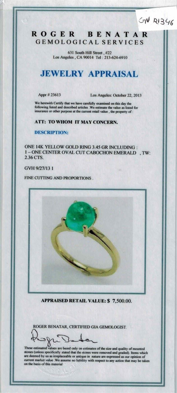 14K Y/G NATURAL COLOMBIAN EMERALD RING: 3.45GRAM /EMERALD :2.36CT/#GVR1346