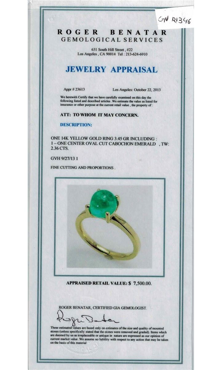 14K Y/G NATURAL COLUMBIAN EMERALD RING: 3.45GRAM /EMERALD :2.36CT/#GVR1346