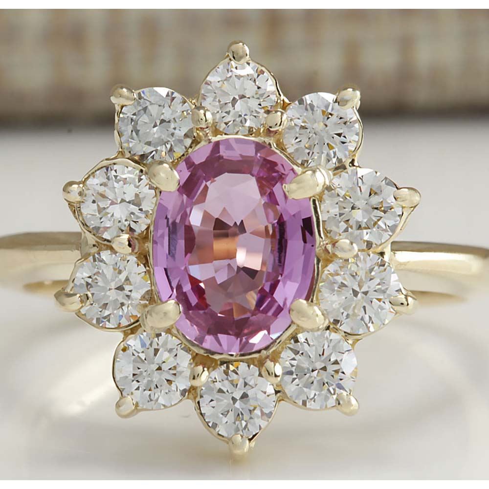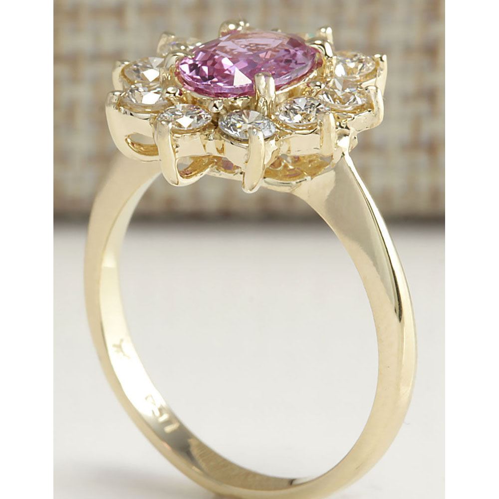 2.37 CTW Natural Pink Ceylon Sapphire Diamond Ring 14K Solid Yellow Gold