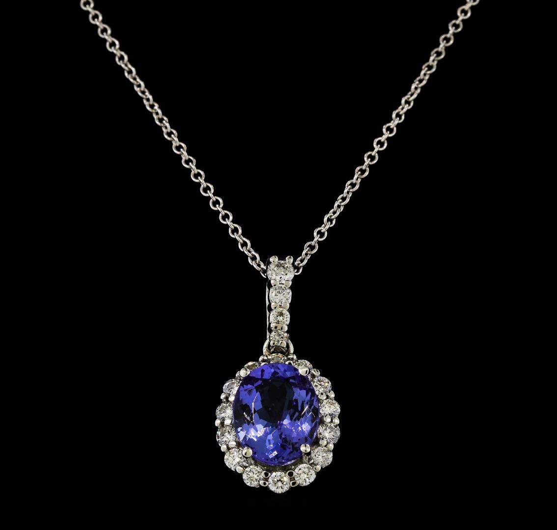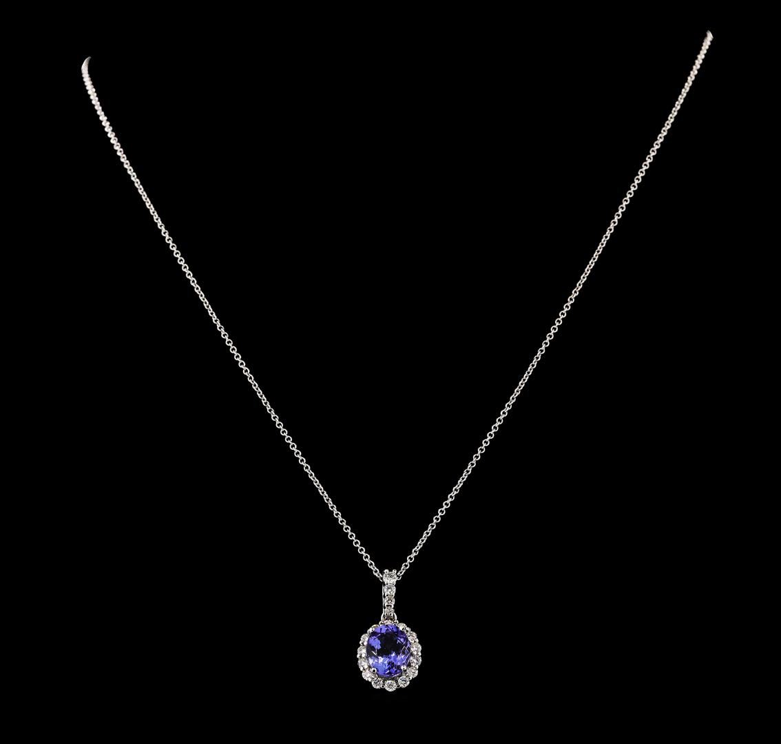 One Tanzanite and Diamond Pendant with Chain including: 14KT White Gold weighing a total of 2.35 grams, Tanzanite weighing a total of 2.37ct, and 18 Diamonds weighing a total of 0.47ctw.