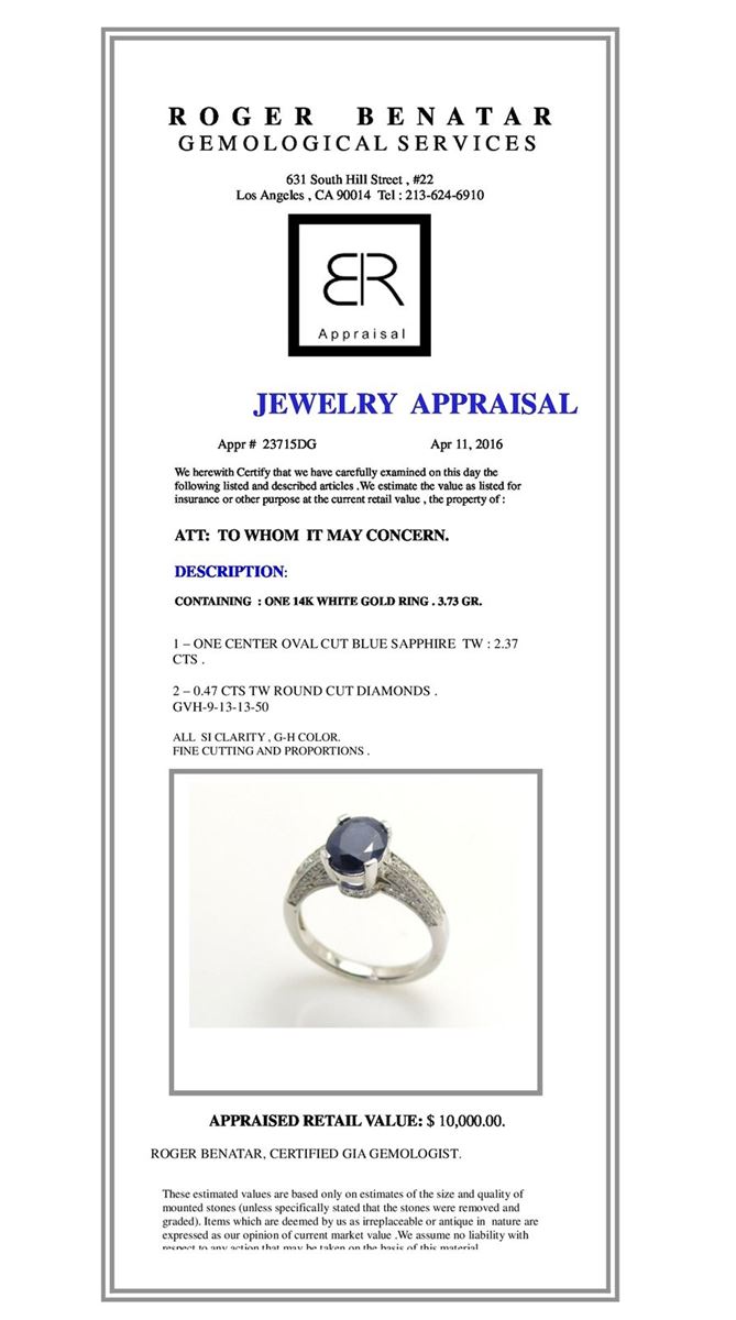 14K WHITE GOLD NATURAL CEYLON BLUE SAPPHIRE RING:3.73 GRAMS/DIAMOND:0.47CT/BLUE SAPPHIRE:2.37CT/#GVR1057
