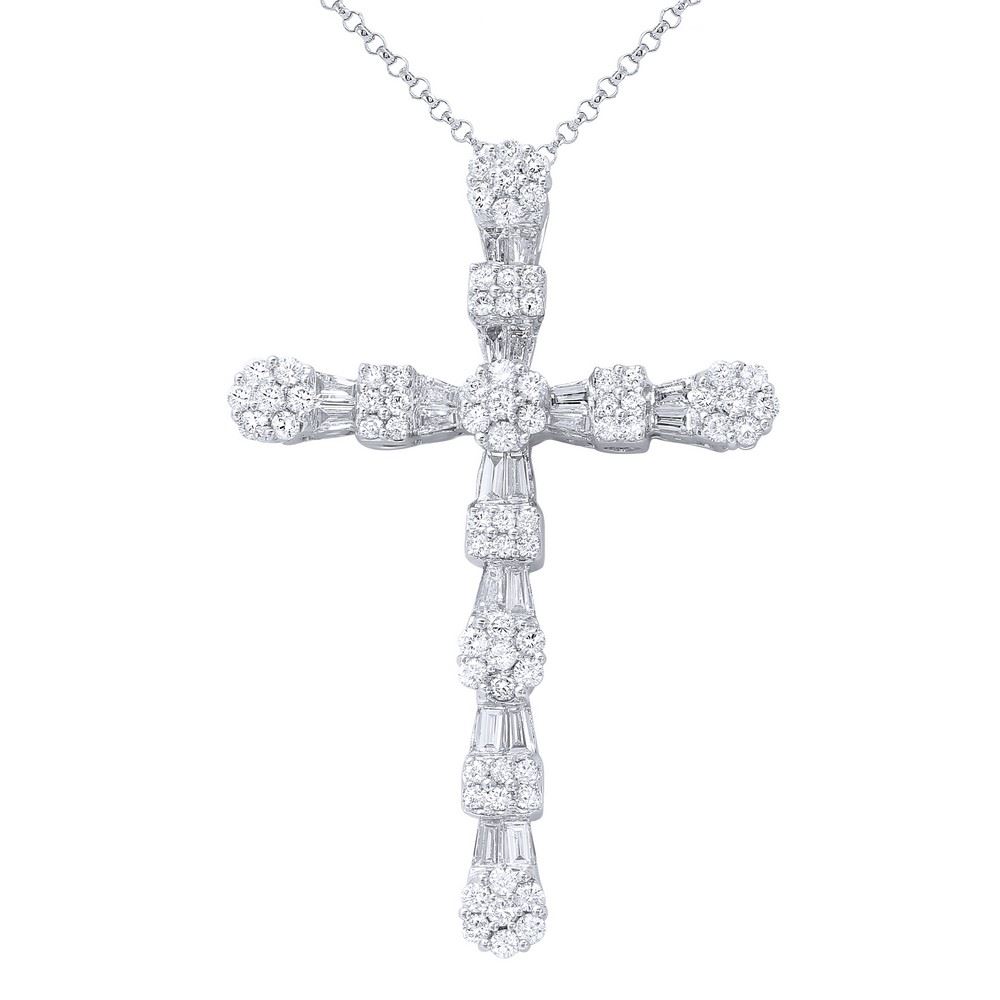 REF-284Y6X - JF337734 ---- 2.38 CTW White Round Diamond & Baguette Necklace 18K White Gold