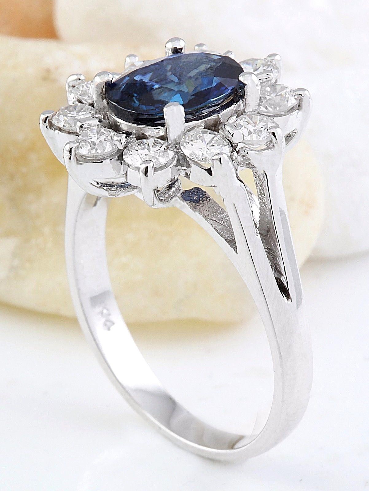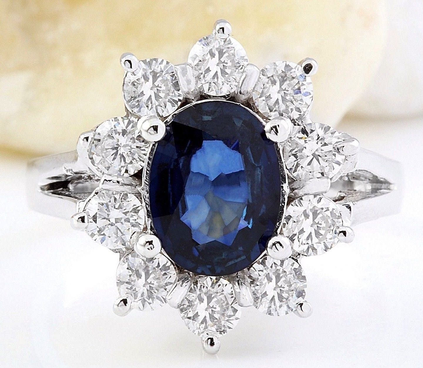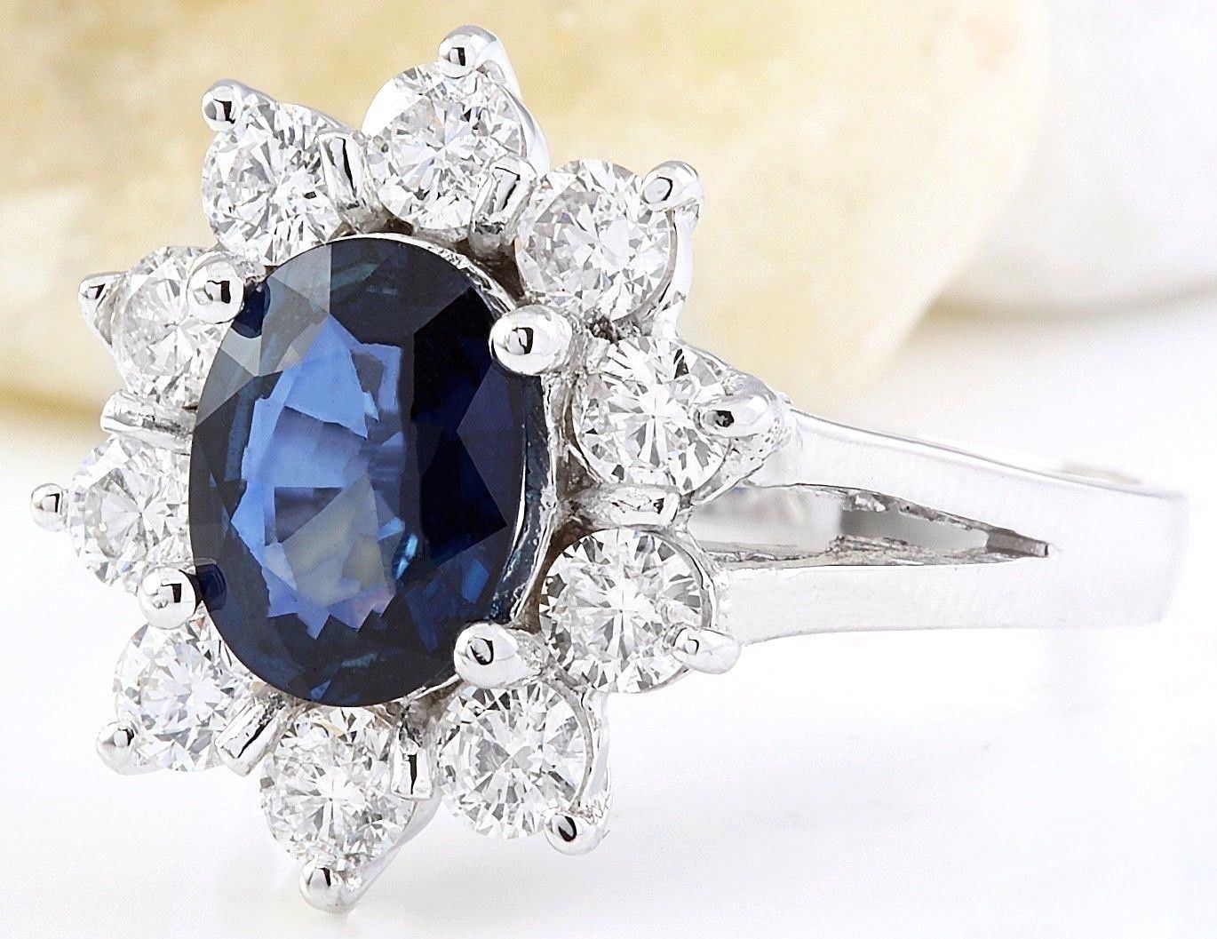 2.38 Carat Natural Sapphire 18K Solid White Gold Diamond Ring