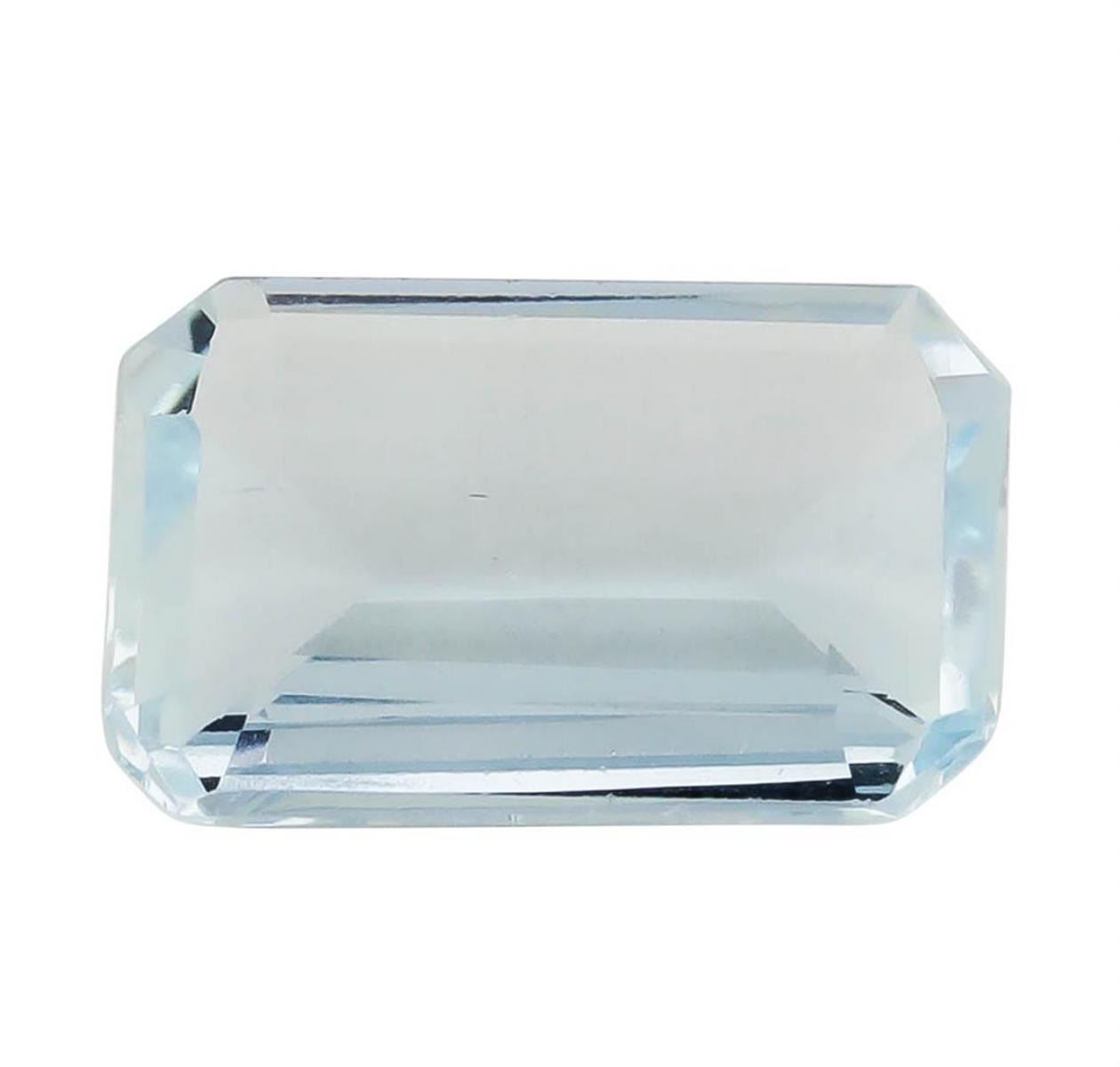 One natural emerald cut aquamarine with an exact weight of 2.38ct., clarity is eye clean, slightly grayish greenish blue. Gemological Appraisals Services estimates the retail value at $904.4 GAS Appraised.