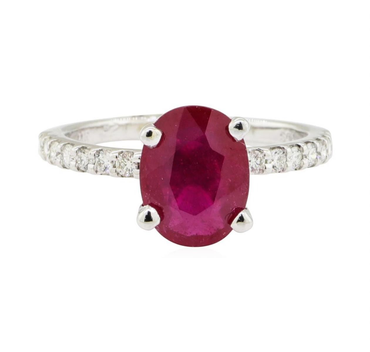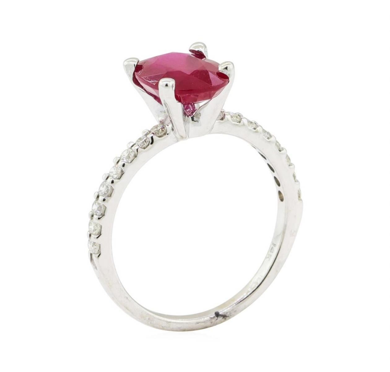 2.38 ctw Glass Filled Natural Ruby and Diamond Ring - 14KT White Gold