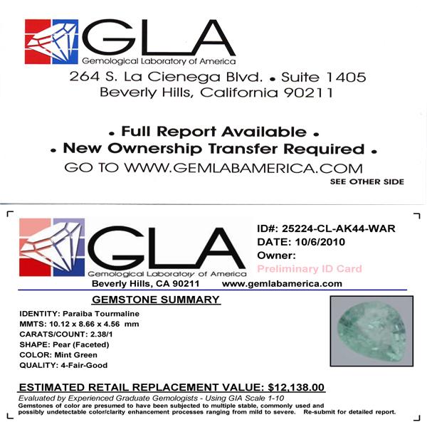 Excellent mint green color RARE copper-bearing specimen pear cut: COPPER in tourmaline is rare and highly prized, it makes the stone color much more vivid (sometimes neon-like) and causes the stone to mimick the reflectivity of diamond; lab quality evalua