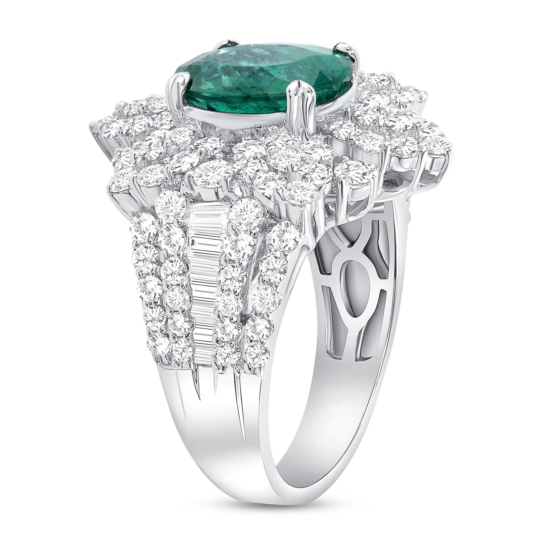 18k White Gold 7.7gm / Oval Emerald 2.38ct / Diamond 2.45ct / #LEm33