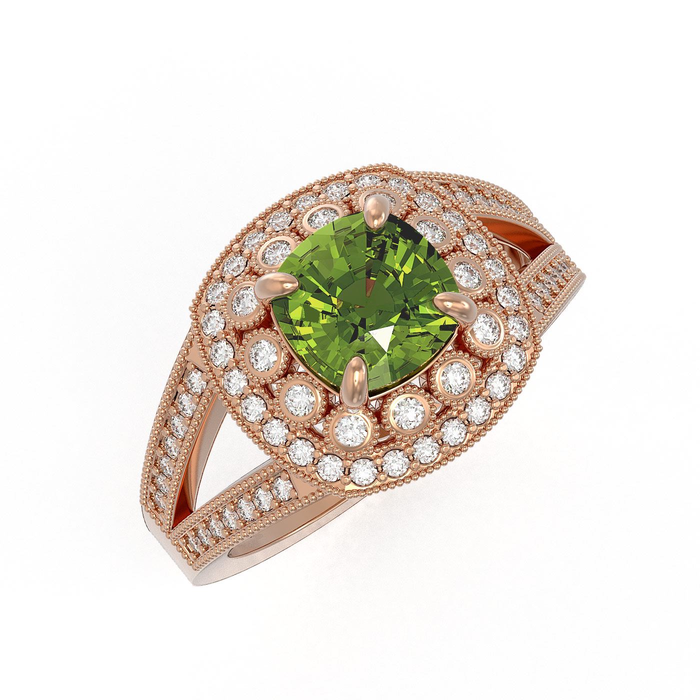 REF-106Y5X - SKU: 44043 ---- 2.39 ctw Certified Tourmaline & Diamond Victorian Ring 14K Rose Gold