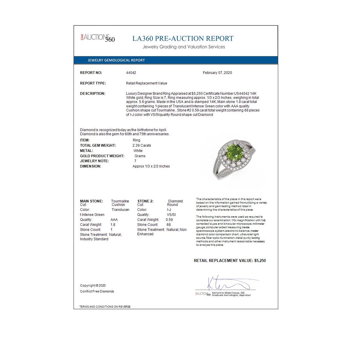 REF-106R5K - SKU: 44042 ---- 2.39 ctw Certified Tourmaline & Diamond Victorian Ring 14K White Gold