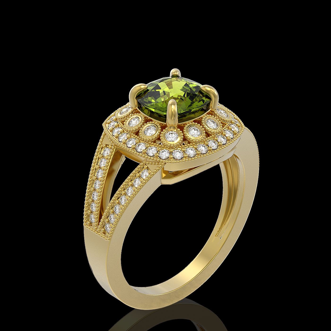 REF-106X5A - SKU: 44044 ---- 2.39 ctw Certified Tourmaline & Diamond Victorian Ring 14K Yellow Gold