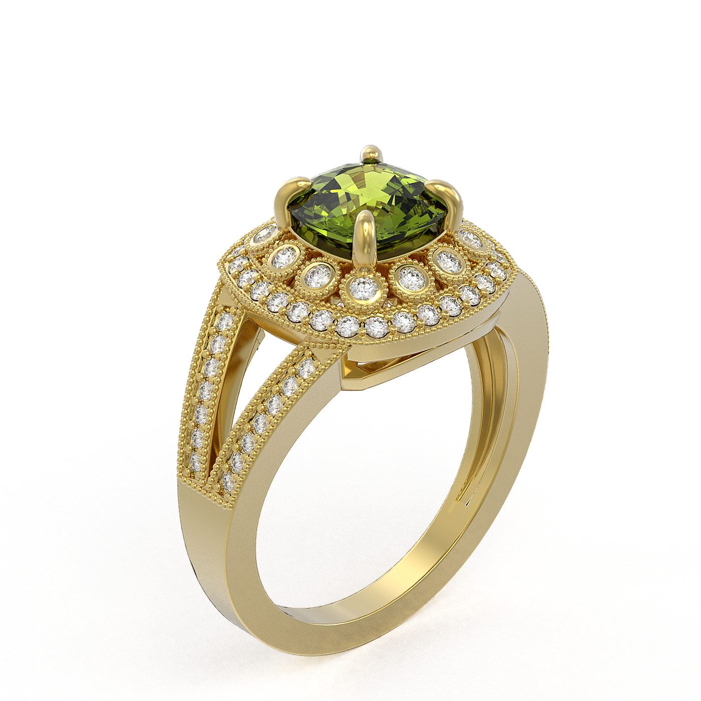 SKU: 44044 ---- 2.39 ctw Certified Tourmaline & Diamond Victorian Ring 14K Yellow Gold