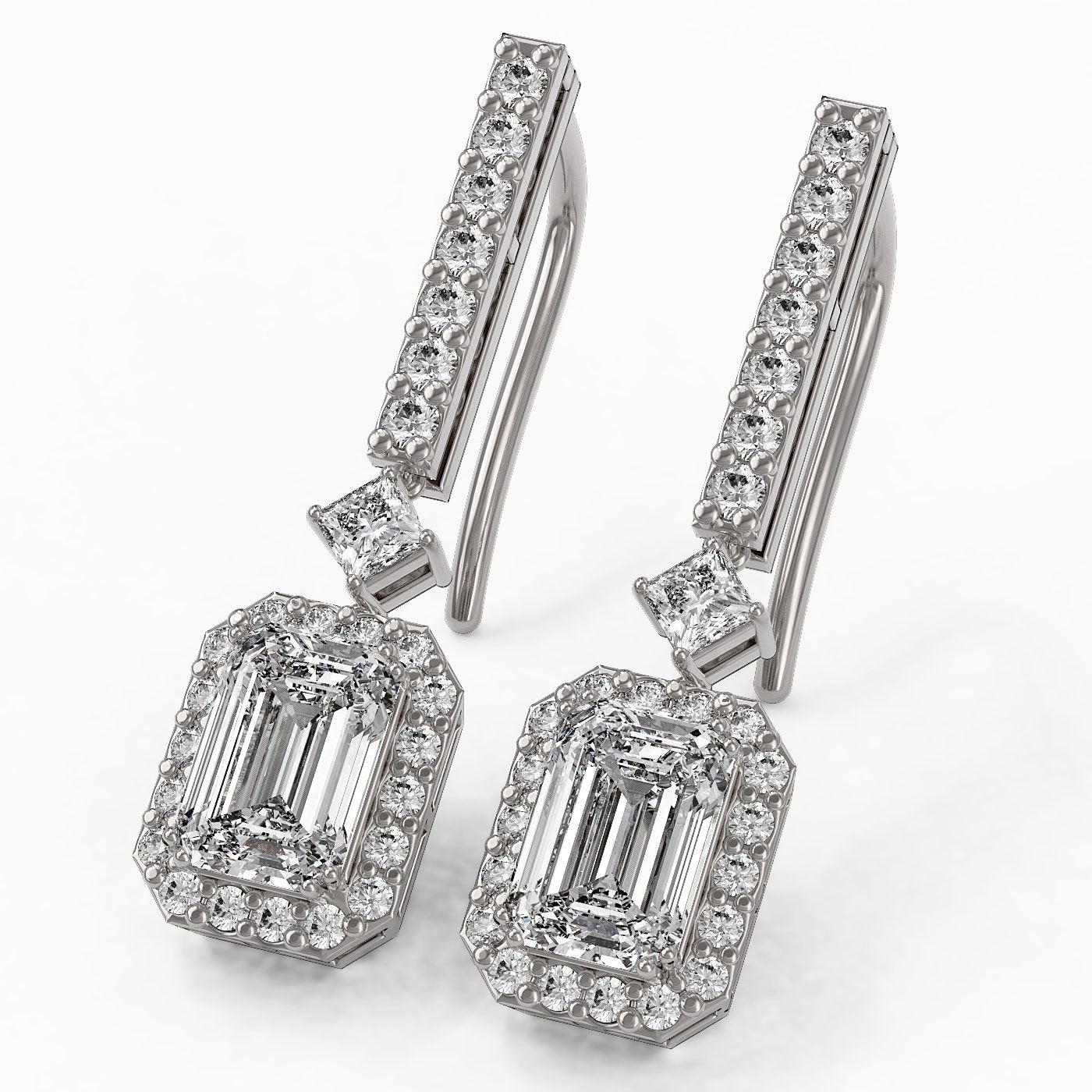 SKU: 49428 ---- 2.4 ctw Emerald Cut Diamond Designer Earrings 18K White Gold