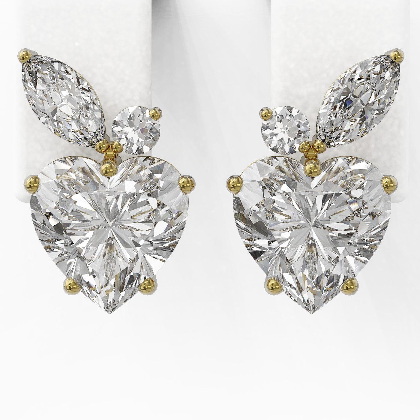 REF-722R6K - SKU: 49112 ---- 2.4 ctw Heart Diamond Designer Earrings 18K Yellow Gold
