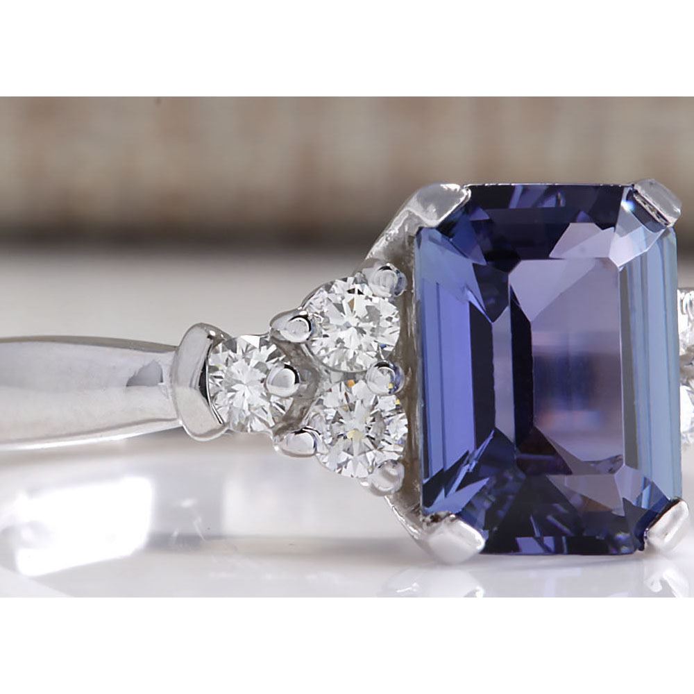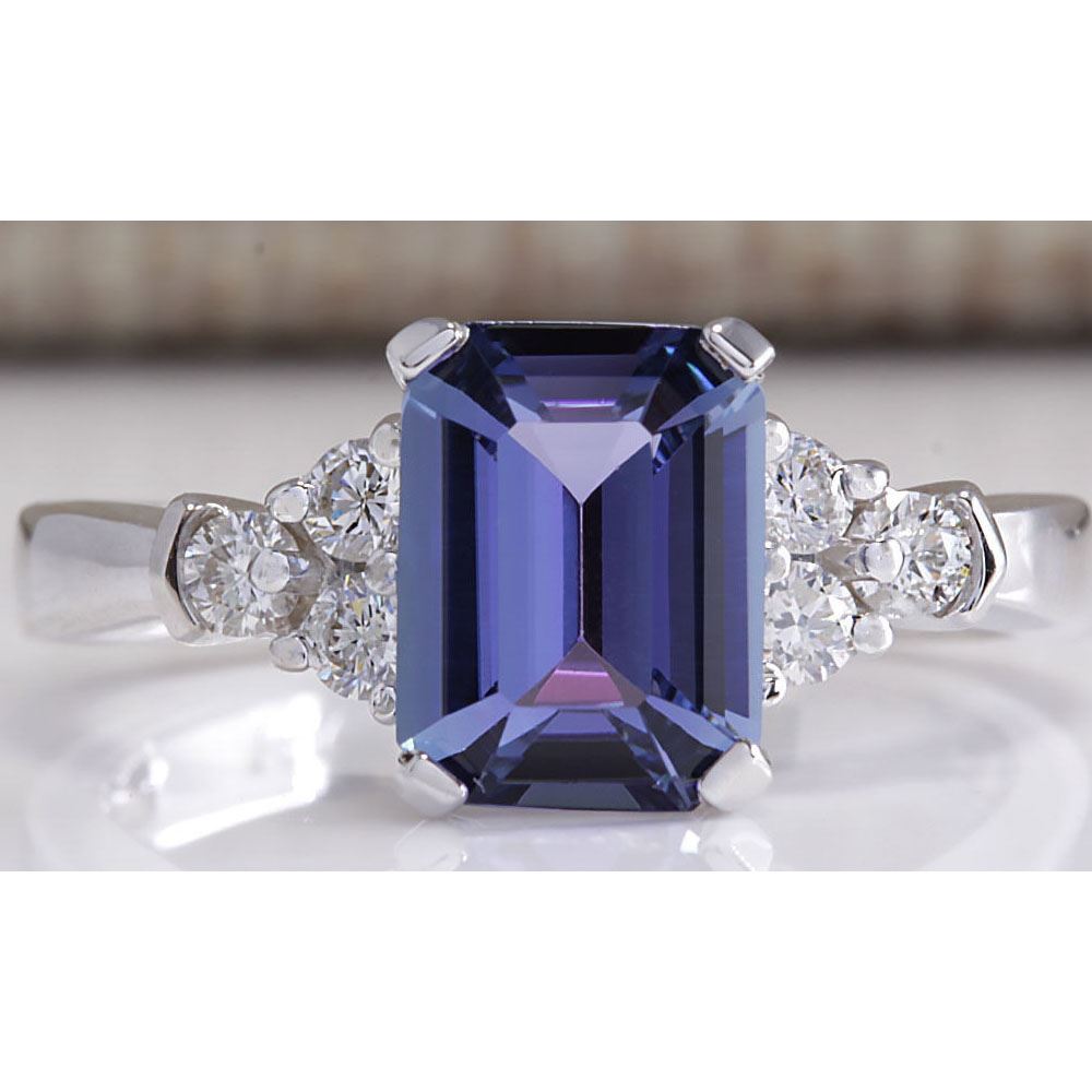 2.40 CTW Natural Blue Tanzanite And Diamond Ring 18K Solid White Gold