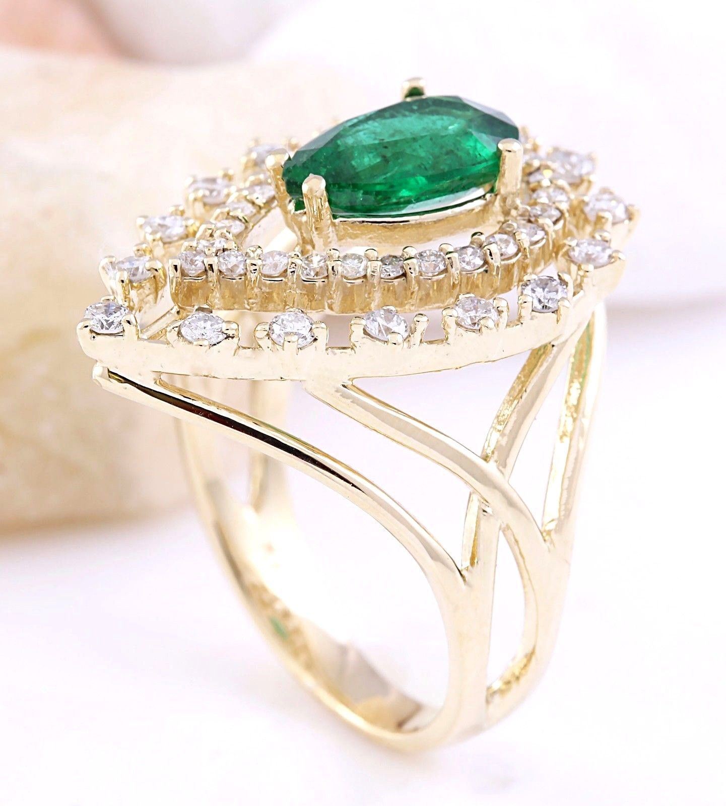 2.40 Carat Natural Emerald 18K Solid Yellow Gold Diamond Ring