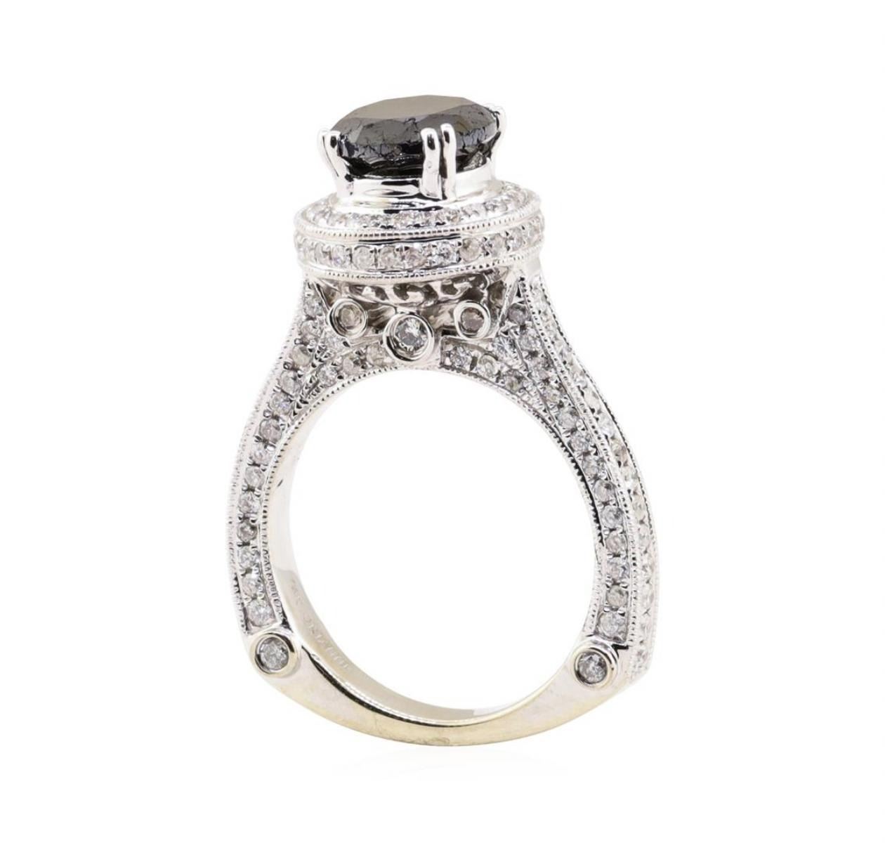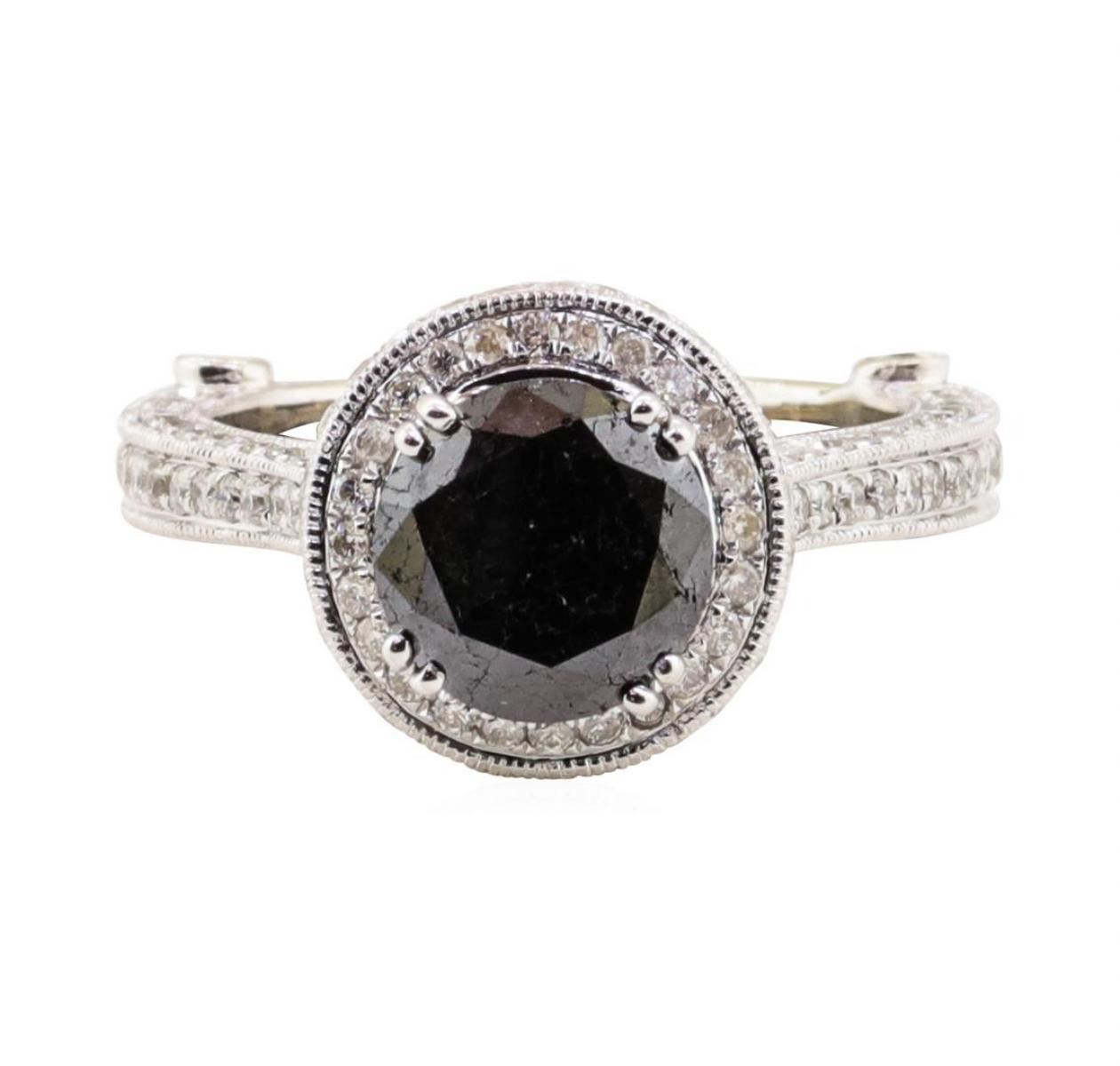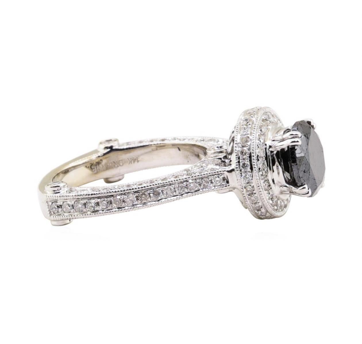 One 2.40ct Black Diamond and Diamond Ring - 14KT White Gold. IAS certified. See Appraisal for more details.