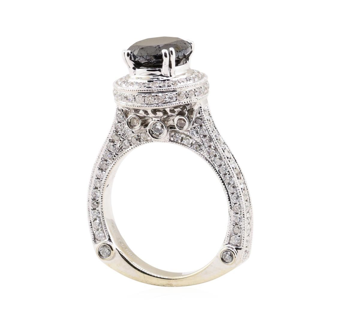 One 2.40 ct Black Diamond and Diamond Ring - 14KT White Gold. IAS certified. See Appraisal for more details.