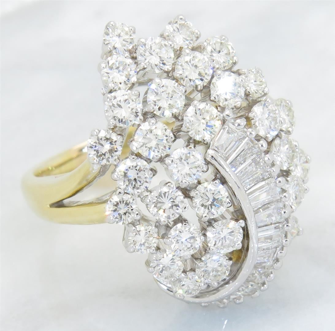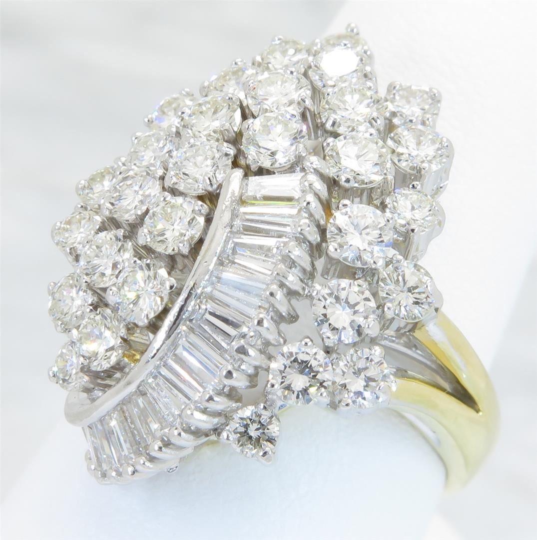 One tested 14K yellow gold diamond ring. Containing: 30 Round Brilliant Cut Diamonds. Clarity: VS-SI, Color: F-H. Approximate total diamond weight: 2.40CTW. Diamonds are graded in the mounting, unless otherwise stated. Weight of ring: 10.5 grams. Size: 6.5.