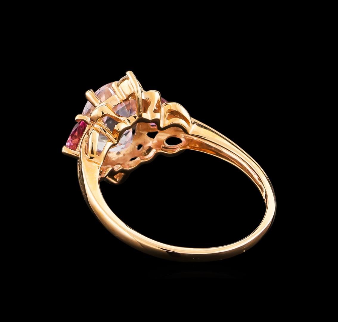 2.40 ctw Kunzite, Tourmaline and Diamond Ring - 14KT Rose Gold