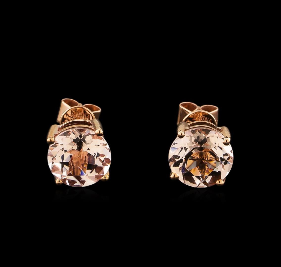 One pair of earrings featuring: 14KT rose gold weighing 1.16 grams containing two morganites with a total weight of 2.40ct.