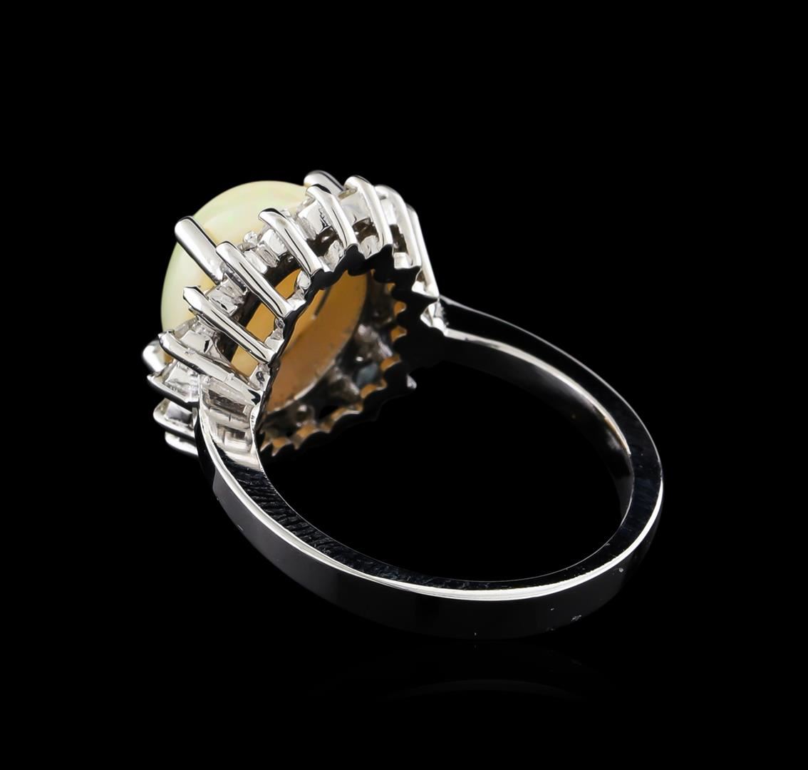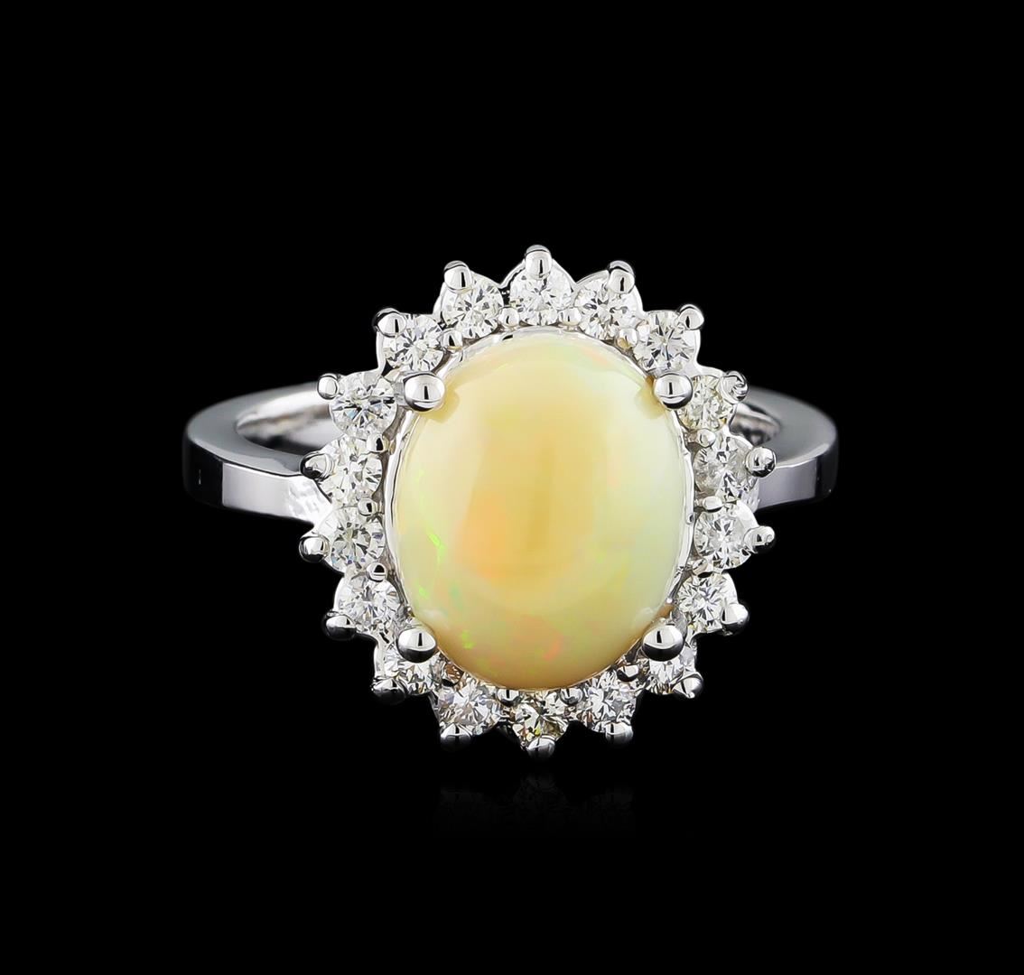 One ring featuring: 14KT white gold weighing 5.40 grams containing one opal with a total weight of 2.40ct and side diamonds with a total weight of 0.52ct.