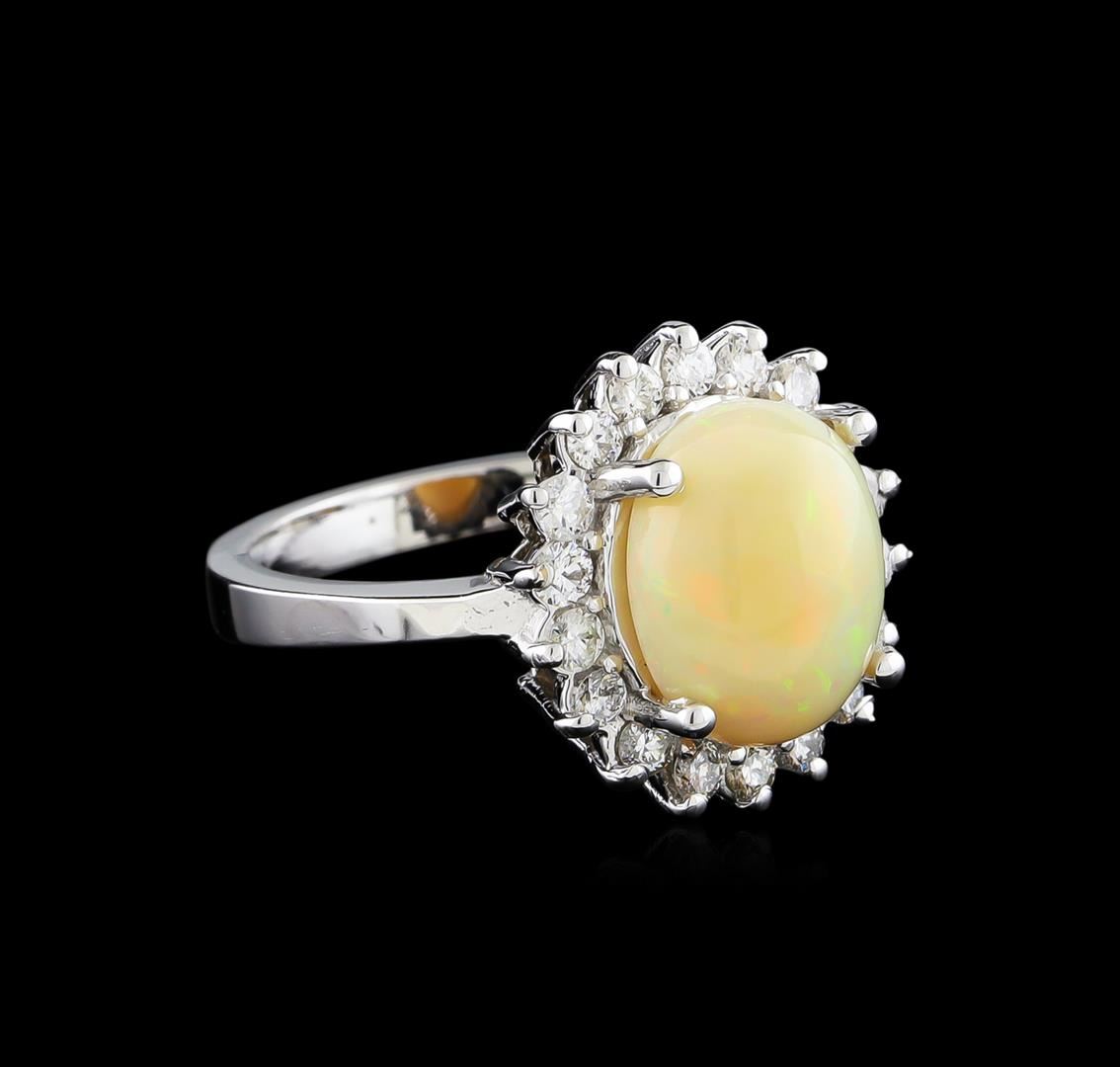 One ring featuring: 14KT white gold weighing 5.40 grams containing one opal with a total weight of 2.40ct and side diamonds with a total weight of 0.52ct.