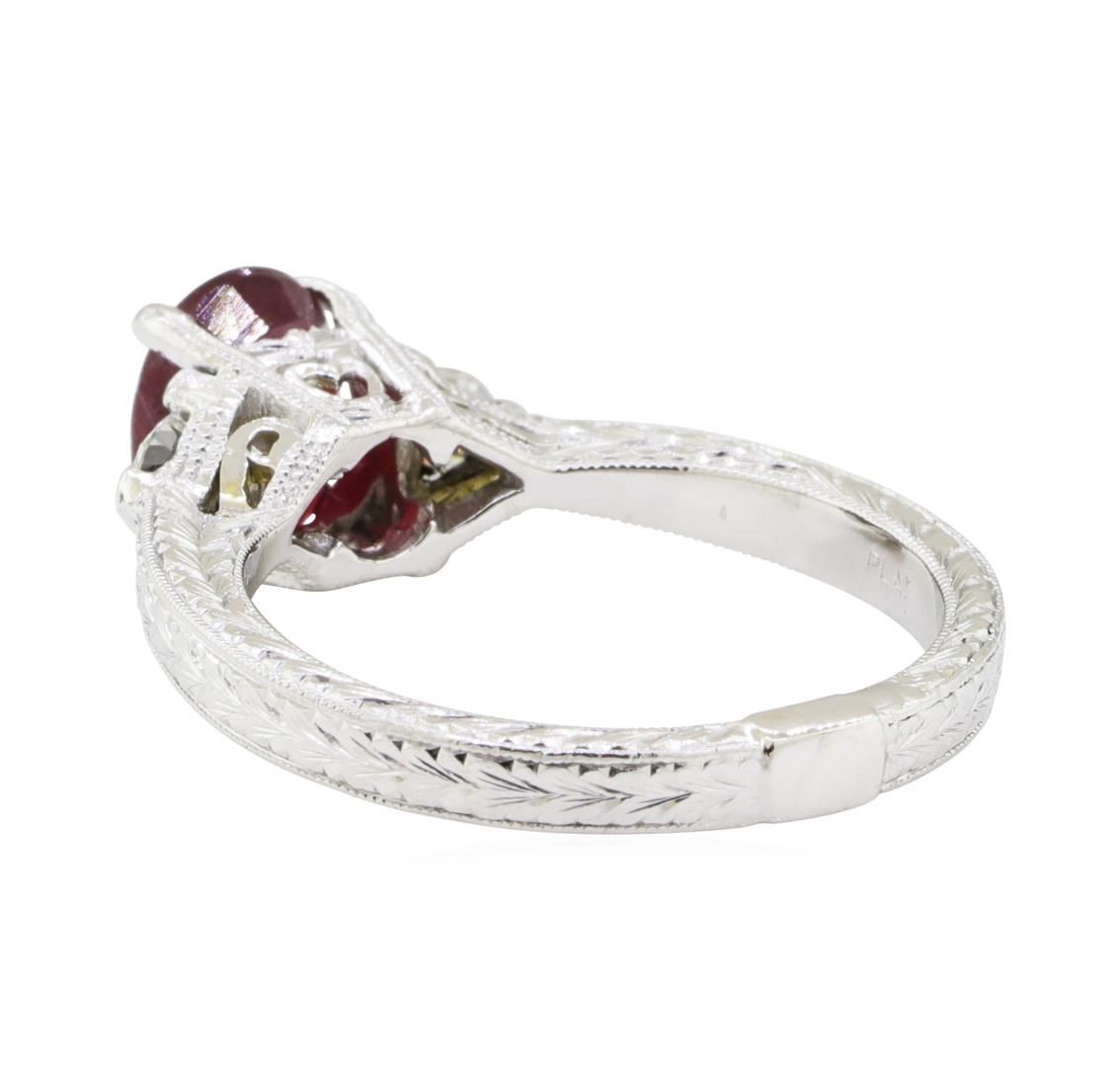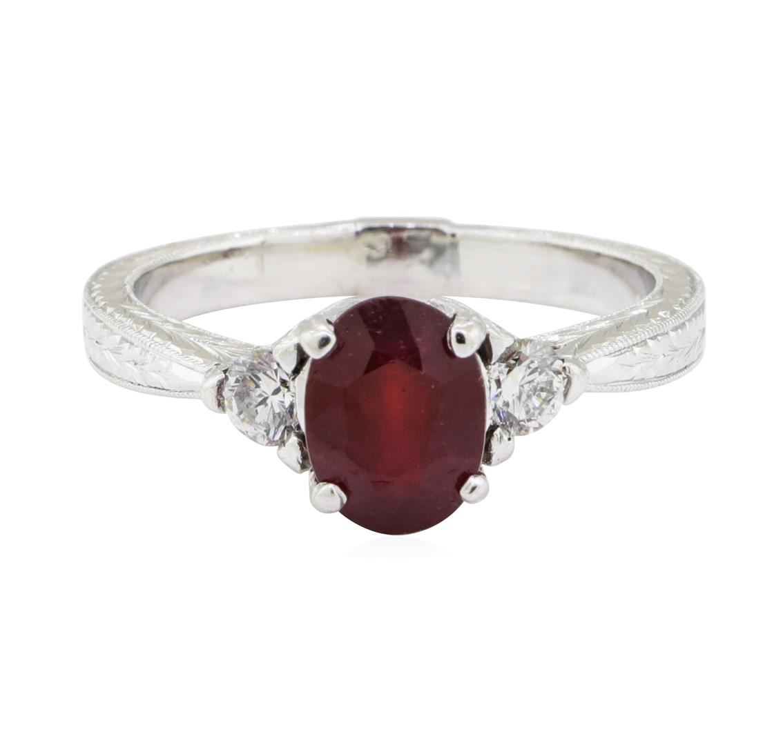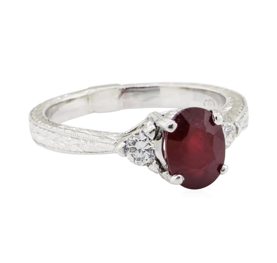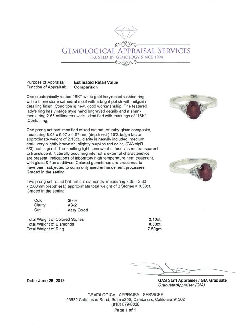 One electronically tested 18KT white gold lady's cast fashion ring with a three stone cathedral motif with a bright polish with milgrain detailing finish. The featured lady's ring has vintage style hand engraved details and a shank measuring 2.65 millimet