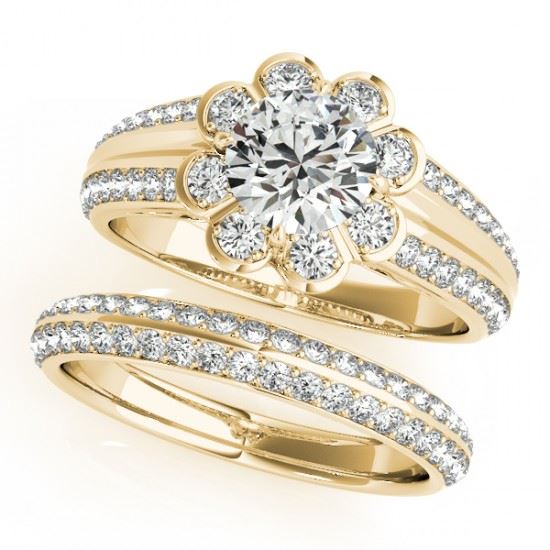 REF-590A8X -31291 ---- 2.41 CTW Certified VS/SI Diamond 2Pc Wedding Set Solitaire Halo 14K Yellow Gold ---- Luxury Designer Brand 2 Pc Set Appraised at $35,450 Certificate Number US31291 14k Yellow gold, 2 Pc Set Size is 7, 2 Pc Set measuring approx. Uniform, weighing in total approx. 9.5 grams. Made in the USA and is stamped 14k, Main stone 1.5 carat total weight containing 1 pieces of H-J color with VS/SI quality Round shape cut Diamond , Stone #2 0.55 carat total weight containing 40 pieces of H-I color with VS/SI quality Round shape cut Diamond , Stone #3 0.36 carat total weight containing 46 pieces of G-H color with VS/SI quality Round shape cut Diamond