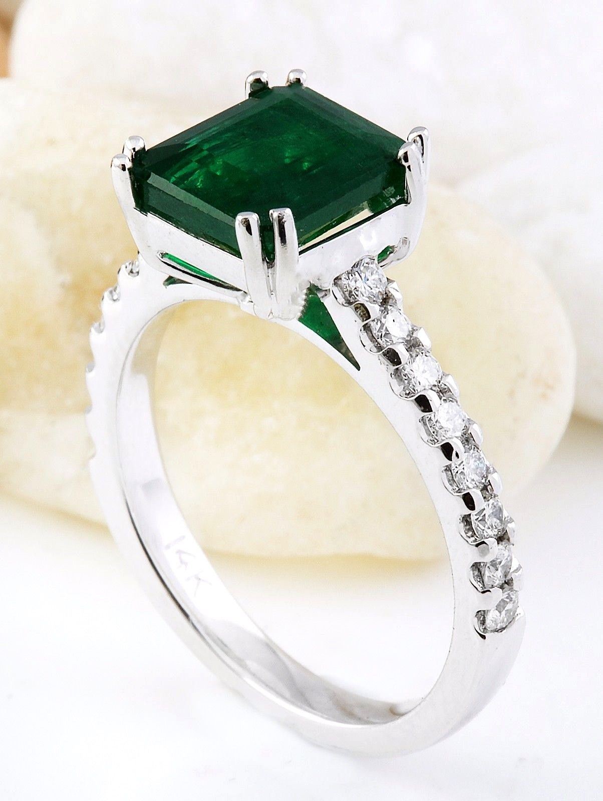 2.41 Carat Natural Emerald 14K Solid White Gold Diamond Ring