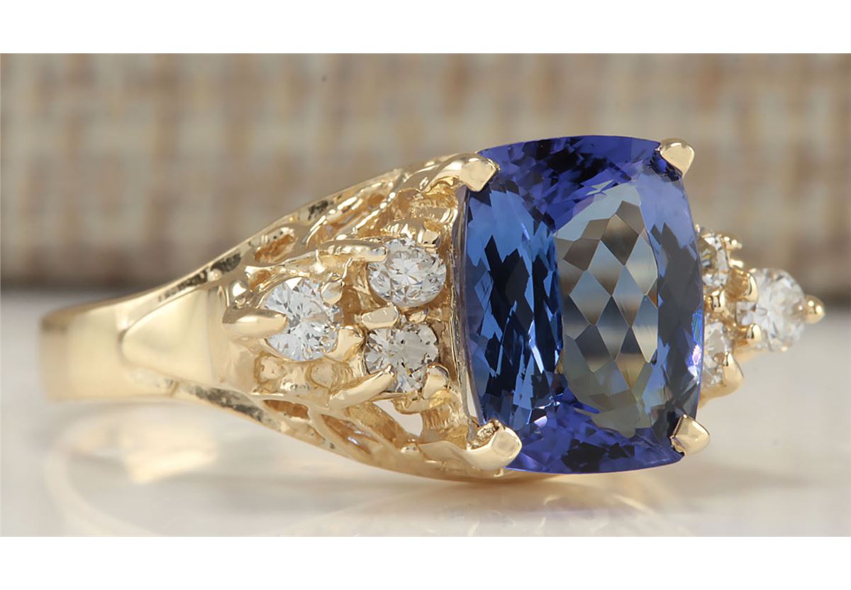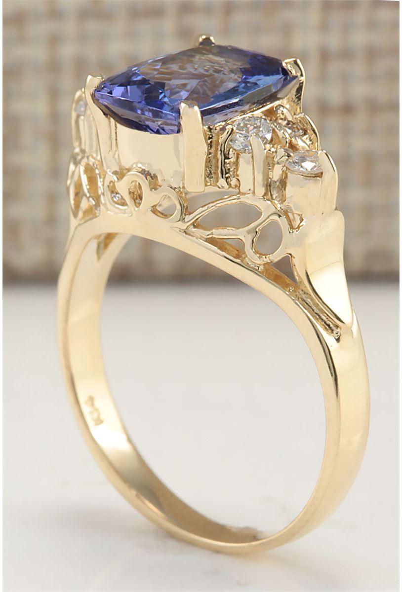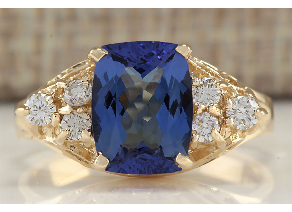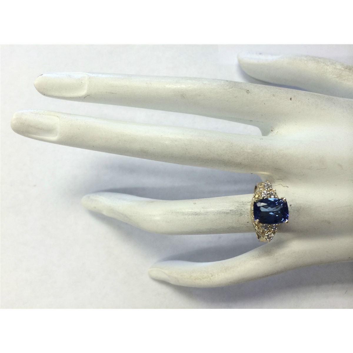Stamped: 14K Ring Size: 5.75 Total Ring Weight: 4 Grams Diamond Weight: Total natural diamond weight is .30carat. SI1-SI2 clarity / G-H color Gemstone Weight: Total Natural Tanzanite Weight is 2.11ctw (Measures: 8.99x6.95mm) Face Measures: 8.99x17.20mm Main stone color: Blue [SKU:702287]