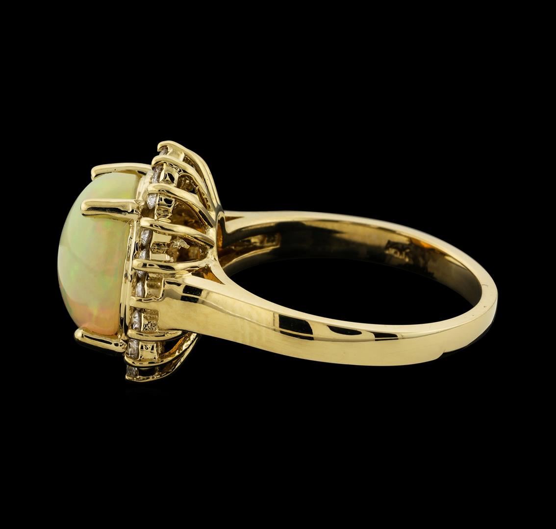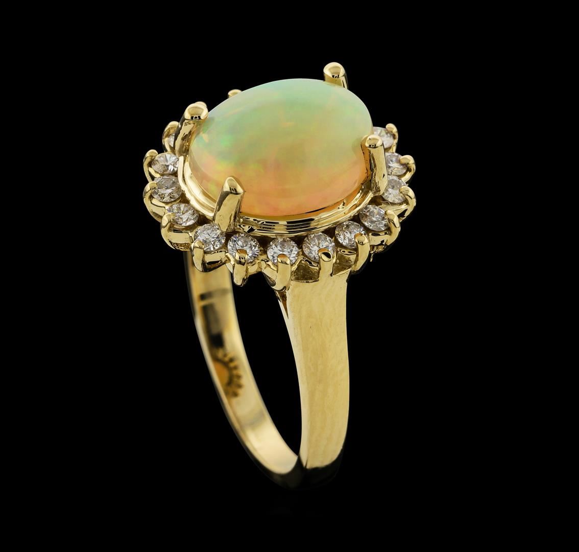 One ring : 14KT yellow gold weighing 5.40gm containing opal with a total weight of 2.42ct and diamonds weighing 0.45ctw.
