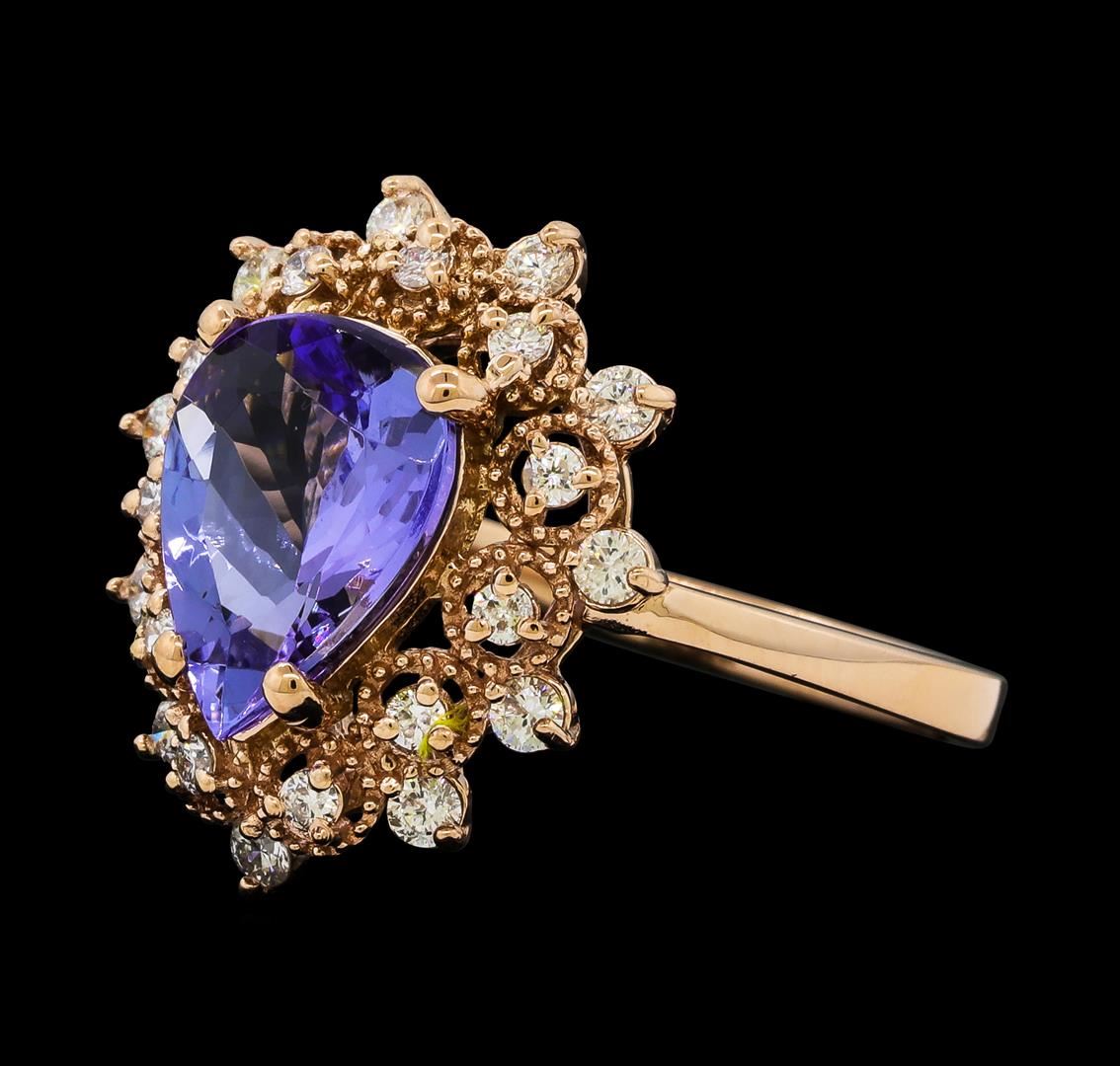 One Tanzanite and Diamond Ring including: 14KT Rose Gold weighing a total of 3.91 grams, Tanzanite weighing a total of 2.43ct, and 22 Diamonds weighing a total of 0.42ctw.