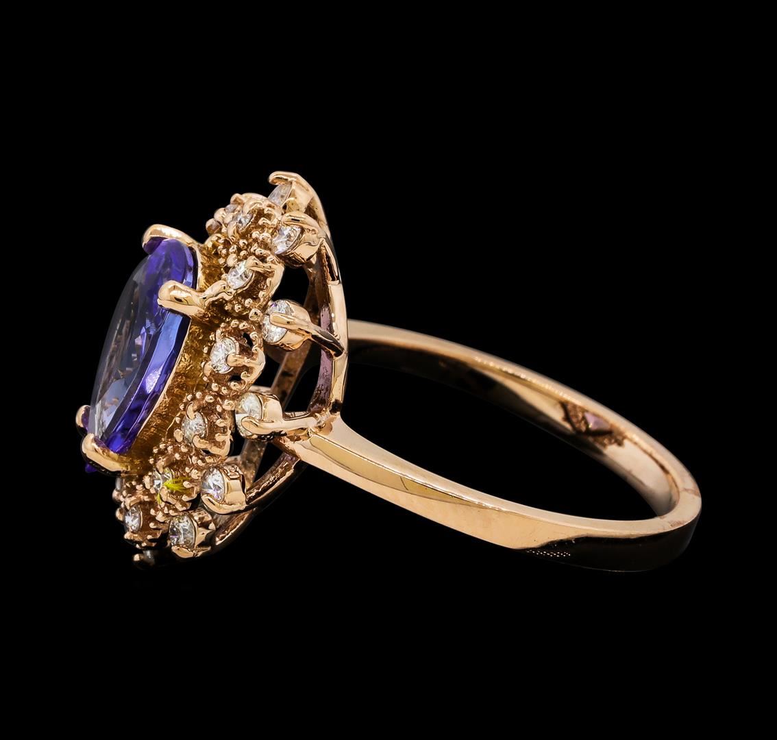 One Tanzanite and Diamond Ring including: 14KT Rose Gold weighing a total of 3.91 grams, Tanzanite weighing a total of 2.43ct, and 22 Diamonds weighing a total of 0.42ctw.