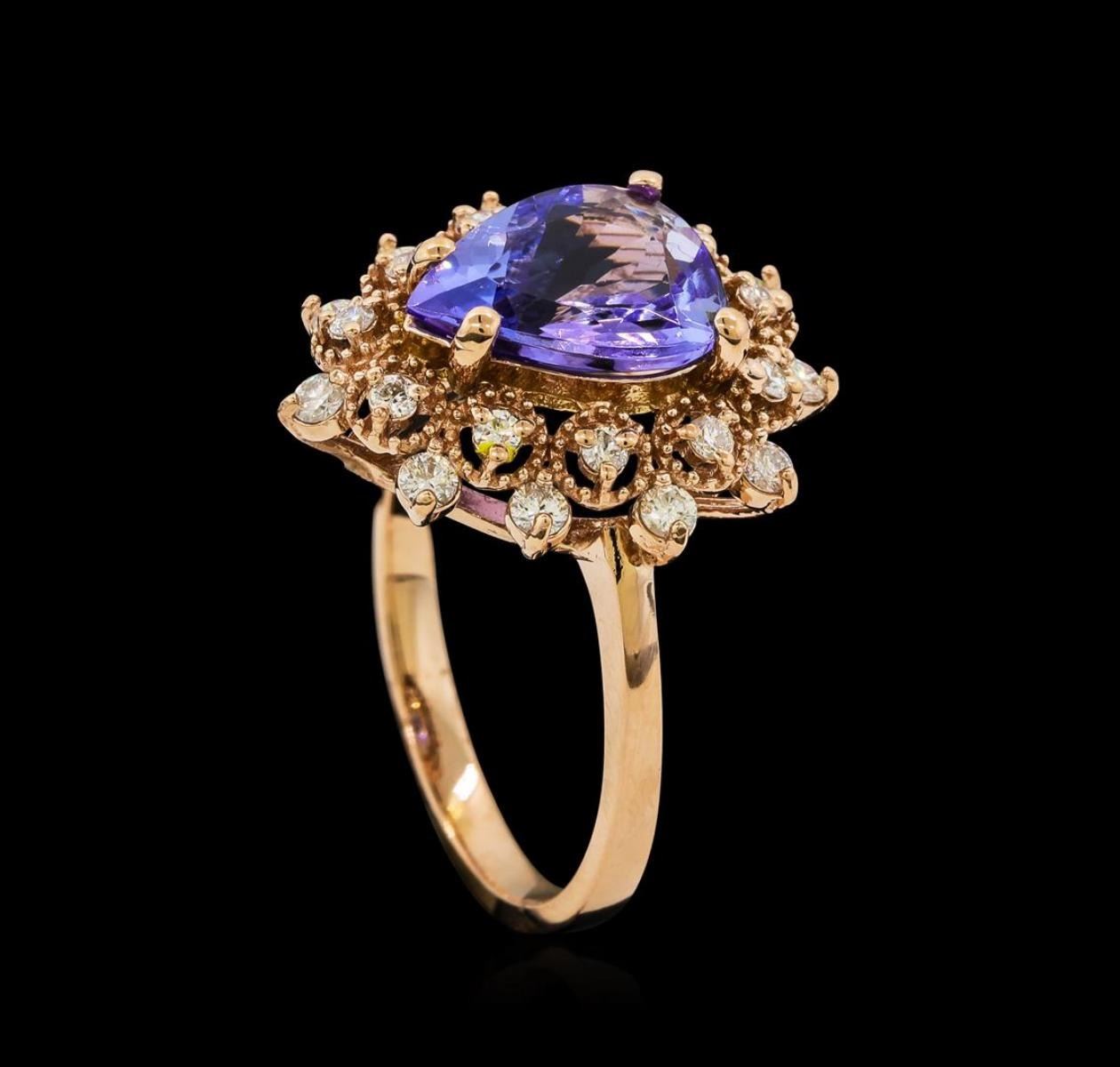 One Tanzanite and Diamond Ring including: 14KT Rose Gold weighing a total of 3.91 grams, Tanzanite weighing a total of 2.43ct, and 22 Diamonds weighing a total of 0.42ctw.