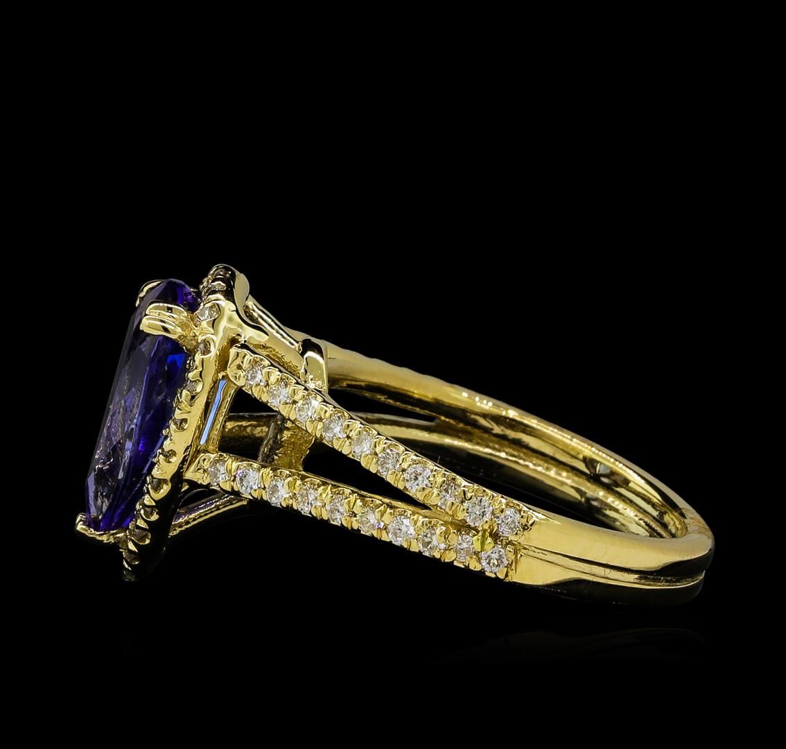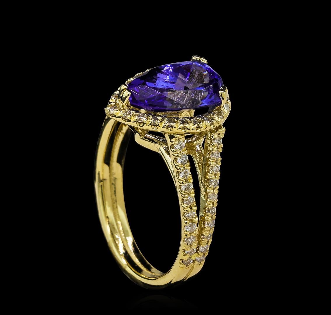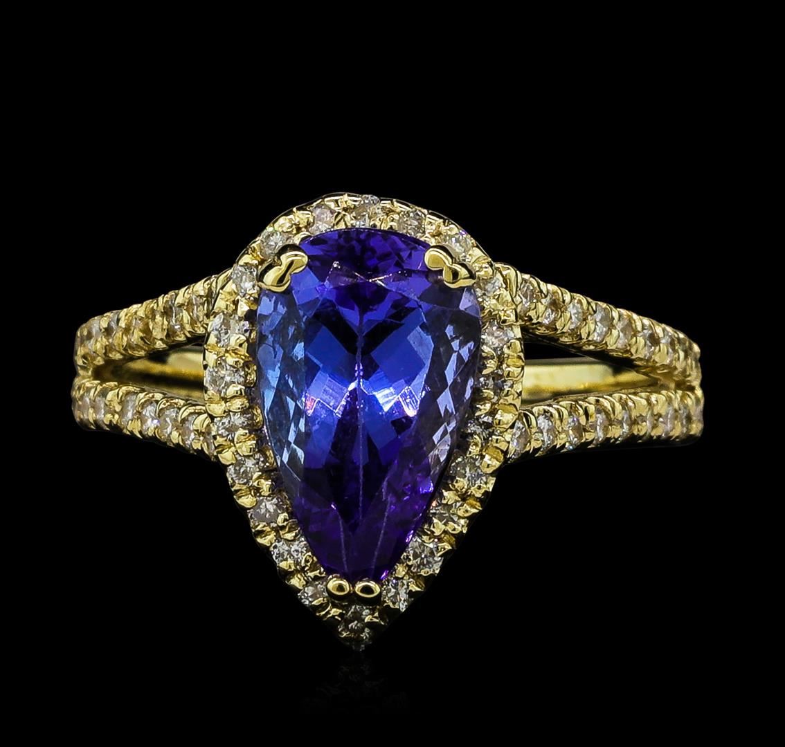 One Tanzanite and Diamond Ring including: 14KT Yellow Gold with a total weight of 4.8 grams; Tanzanite with a total weight of 2.43 ct and Diamonds with a total weight of 0.47 ctw.