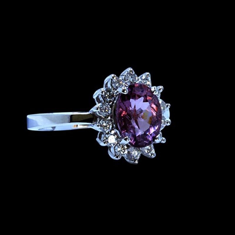 14K WHITE GOLD NATURAL COLOR CHANGE GARNET RING:3.79GRAM /COLOR CHANGE GARNETE :2.43CT/ DIAMOND :0.43CT/#GVR1243