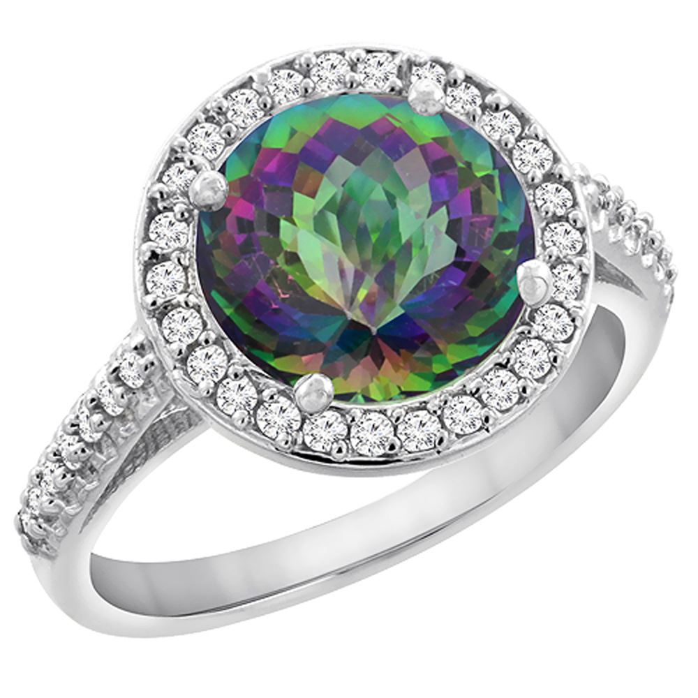 REF-57H3M - SKU: SC-CW908262 ---- 2.44 CTW Mystic Topaz & Diamond Ring 10K White Gold