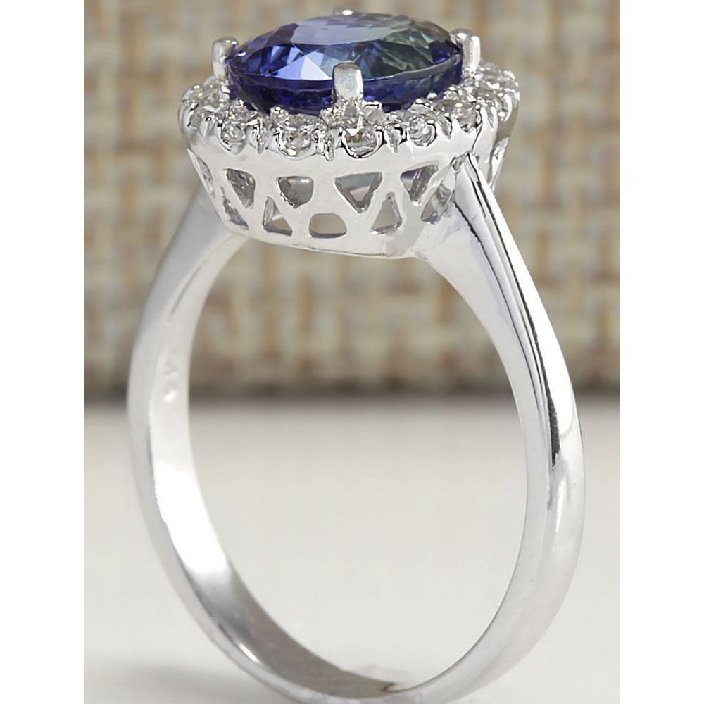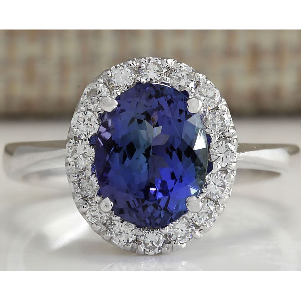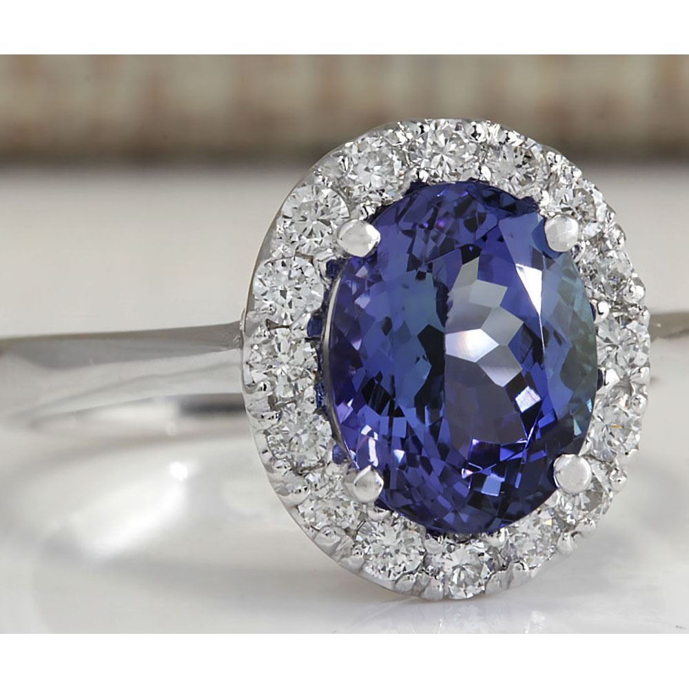 2.45 CTW Natural Tanzanite Diamond Ring 14K Solid White Gold