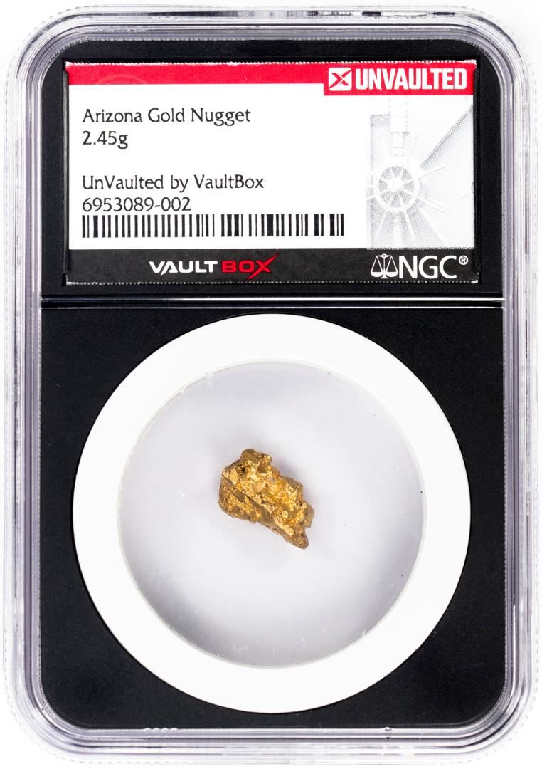 One 2.45 Gram Arizona Gold Nugget NGC Vaultbox Unvaulted. NGC Certified.