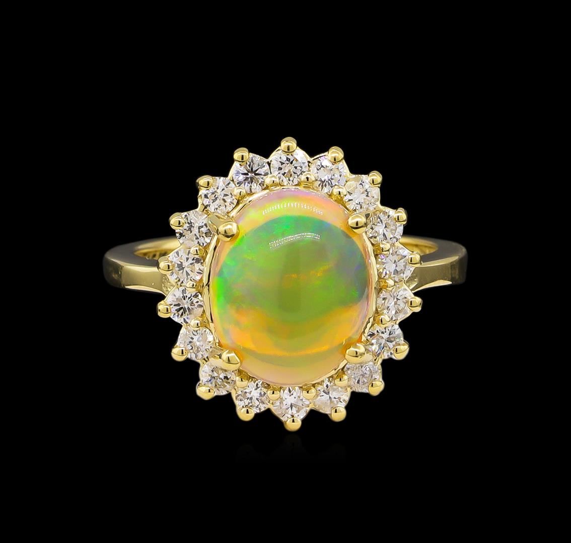 One ring featuring: 14KT yellow gold weighing 5.42 grams containing one opal with a total weight of 2.45ct and side diamonds with a total weight of 0.61ct.