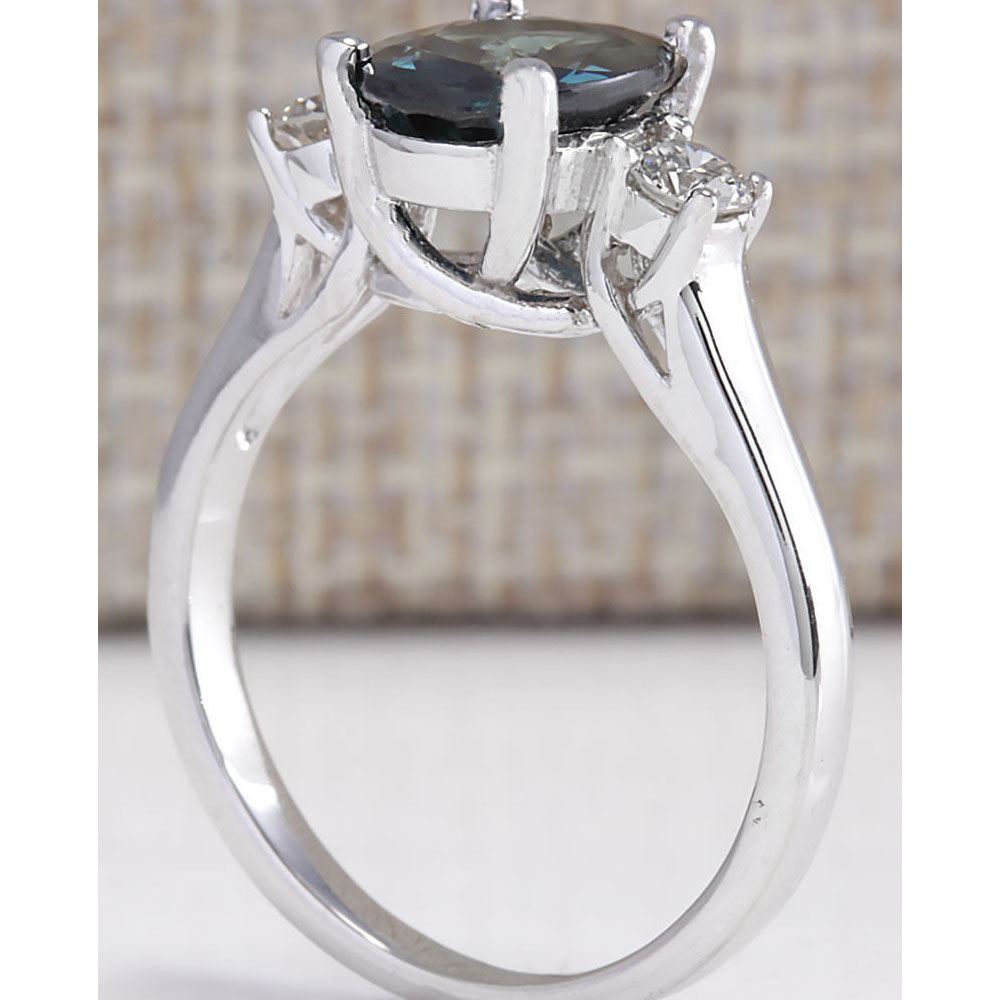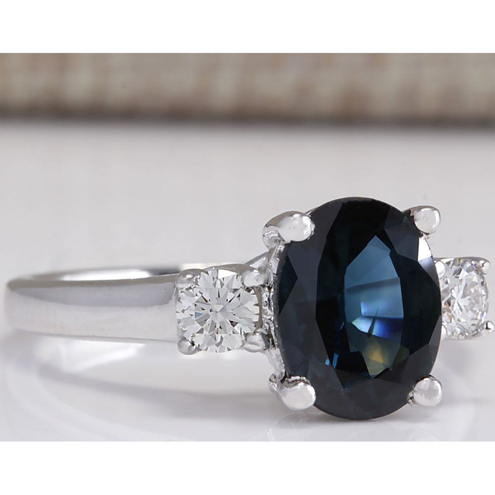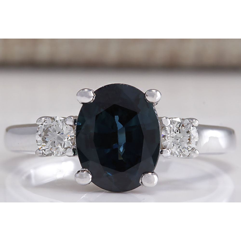 2.47 CTW Natural Blue Sapphire Diamond Ring 14K Solid White Gold