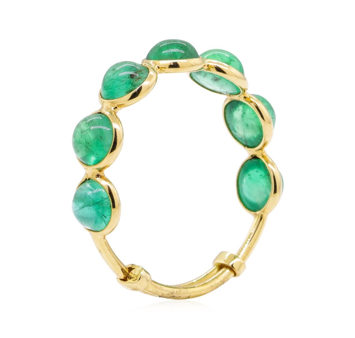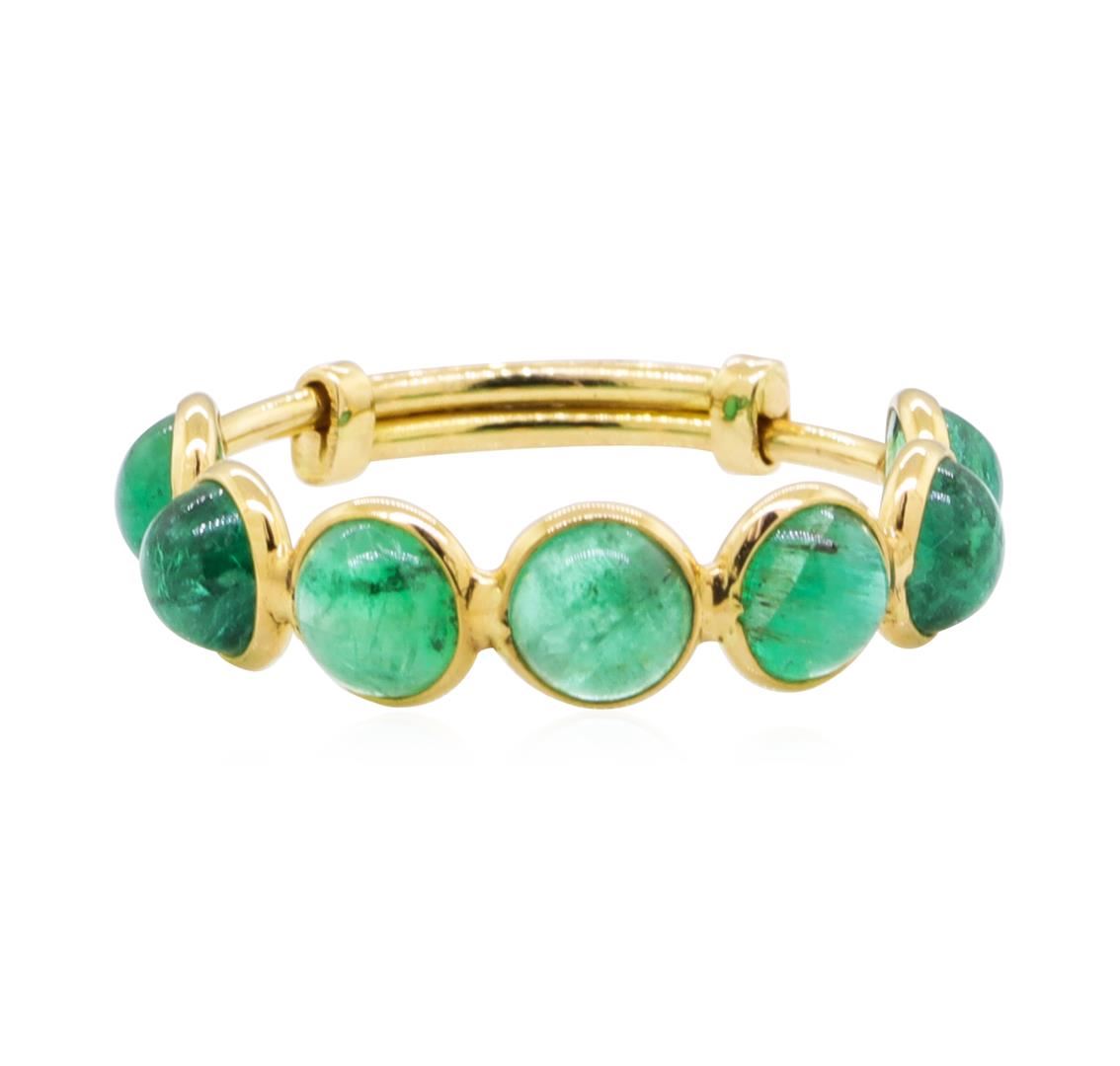 One adjustable ring featuring: 18KT yellow gold weighing 1.6 grams containing seven emeralds weighing 2.47ctw.