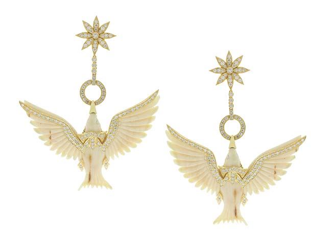 18k Gold MAMMOTH AND DIAMOND EAGLE EARRING/Diamond Count 1:230/Diamond 1 TCW:2.48/Diamond Color & Clarity:G-H/SI1-SI3/Diamond Count 2:/Diamond 2 TCW:/Diamond Count 3:/Diamond 3 TCW:/Diamond Color & Clarity:/Gemstone Count 1: 2/Gemstone 1 TCW:/Gemstone Type:MAMMOTH /Gemstone Count 2: /Gemstone 2 TCW:/Gemstone Type:/Gemstone Count 3: /Gemstone 3 TCW:/Gemstone Type:/Metal 1:18k GoldYellow Gold/Gram Weight:14.57/Weight/gram:/Gross Weight:17.19/Item-Size (HxW mm):