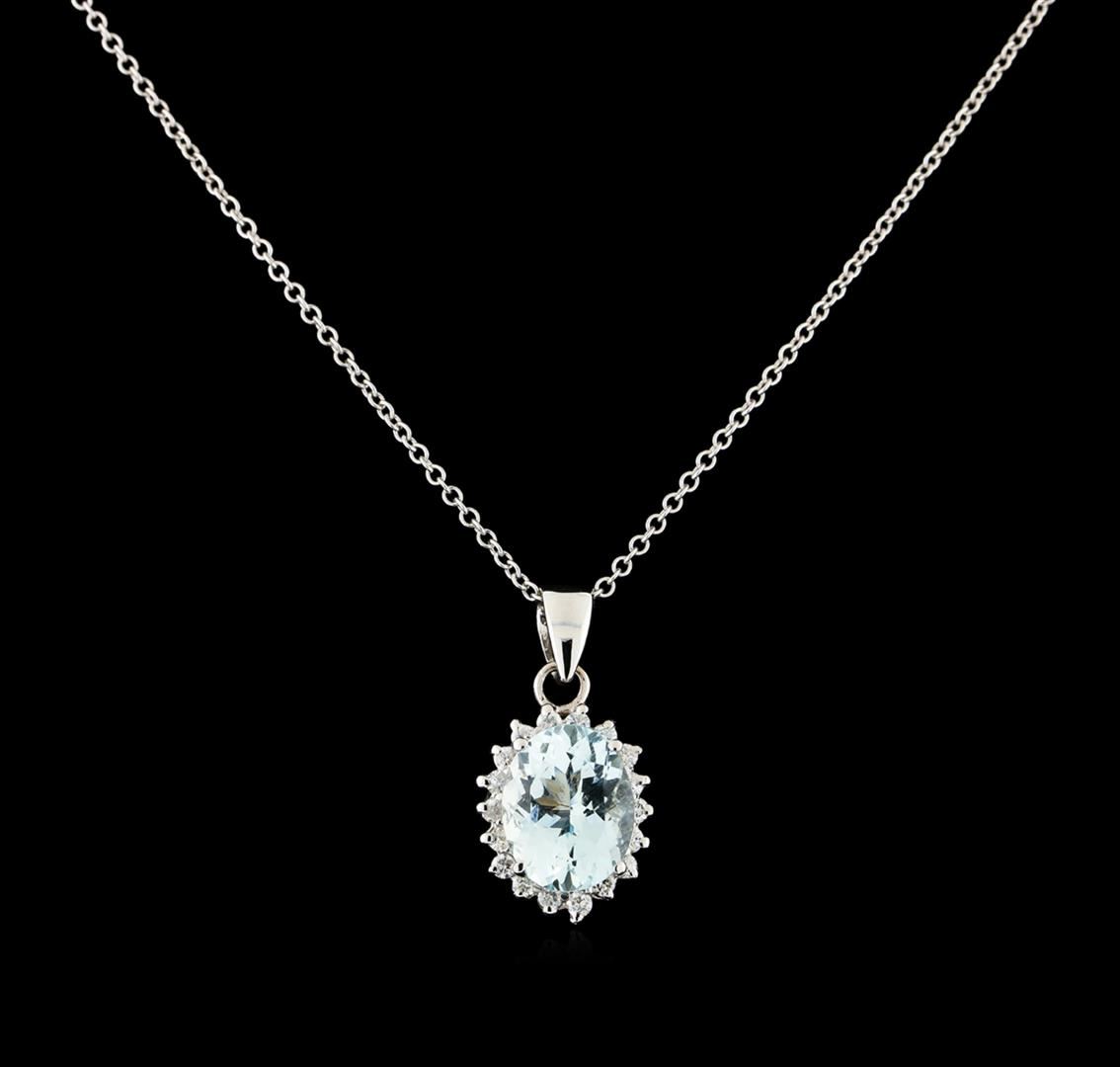 One Pendant With Chain featuring: 14KT White Gold weighing 2.3 grams containing one Aquamarine center stone with a total weight of 2.48ct and Diamonds with a total weight of 0.25ct.