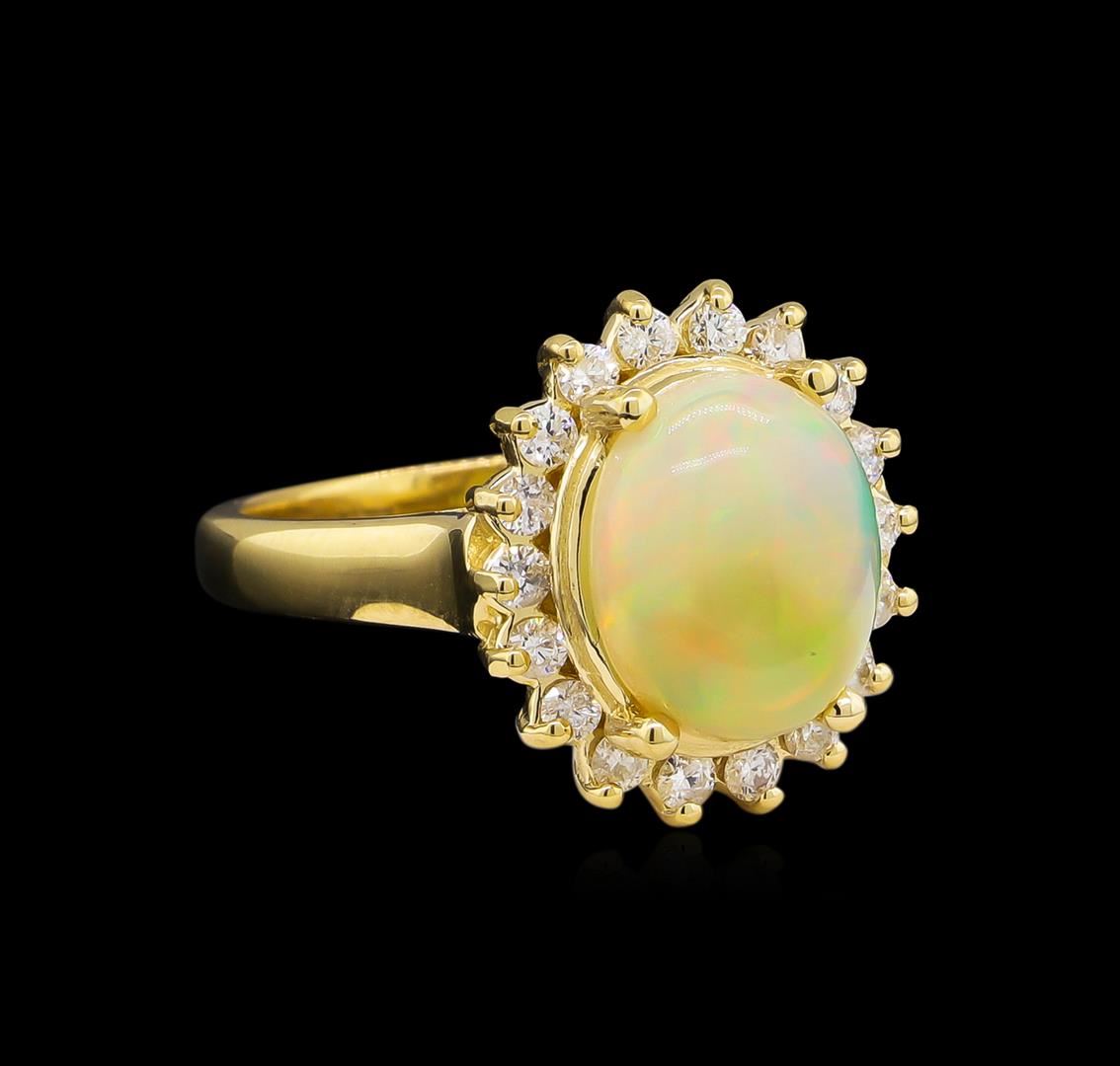 One ring featuring: 14KT yellow gold weighing 5.52 grams containing one opal with a total weight of 2.48ct and side diamonds with a total weight of 0.45ct.
