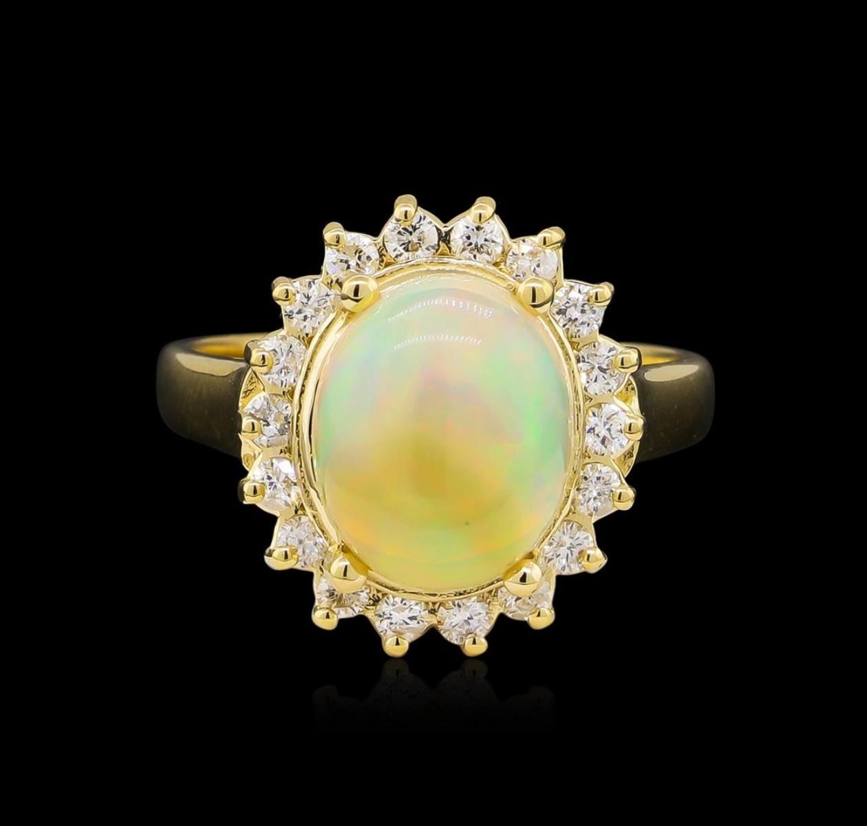 One ring featuring: 14KT yellow gold weighing 5.52 grams containing one opal with a total weight of 2.48ct and side diamonds with a total weight of 0.45ct.