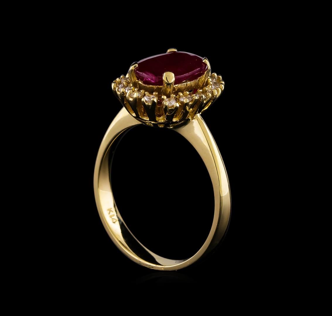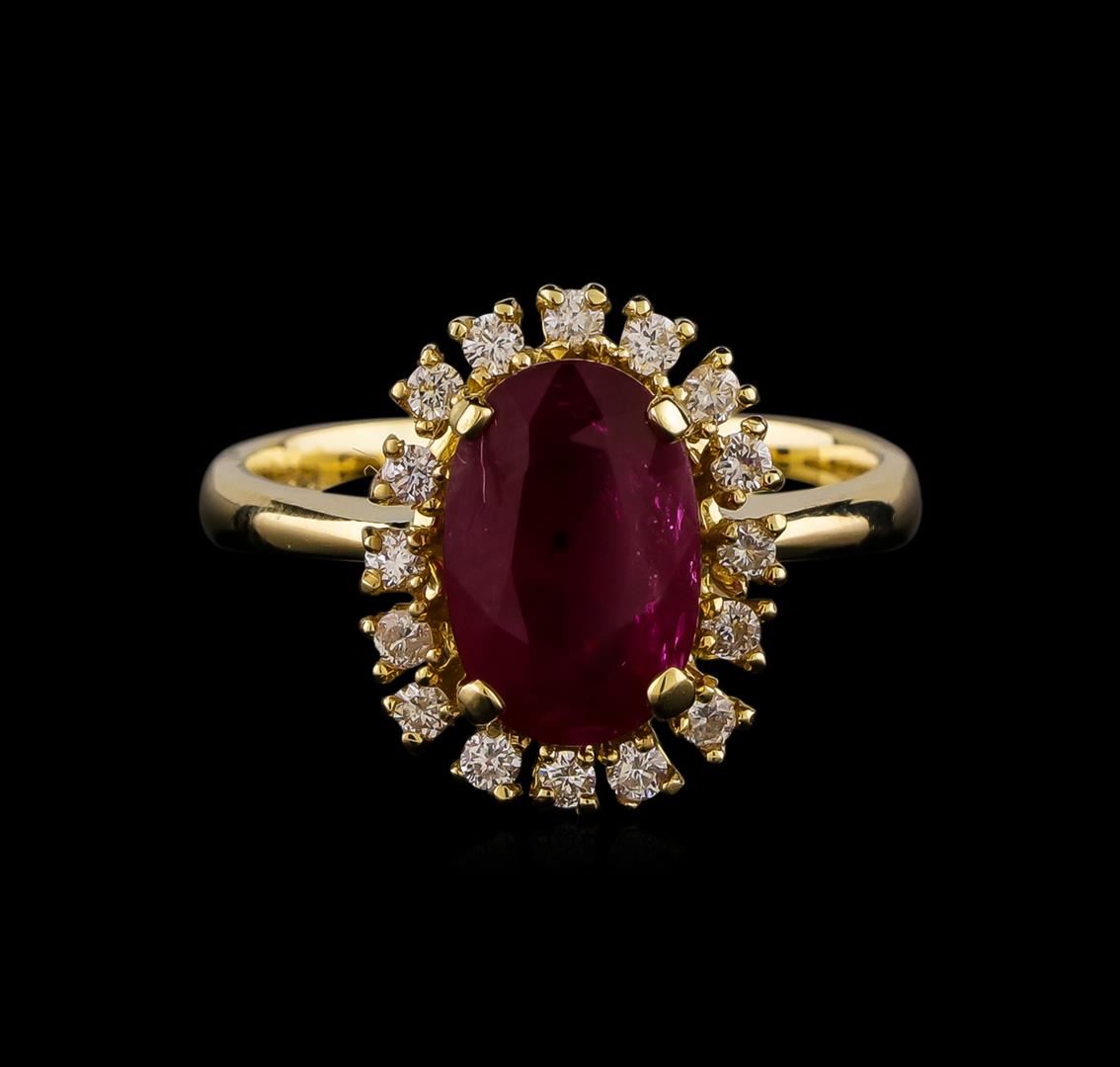 One ring : 14KT yellow gold weighing 4.56gm containing one ruby center stone with a total weight of 2.49ct. and diamonds weighing 0.30ctw.