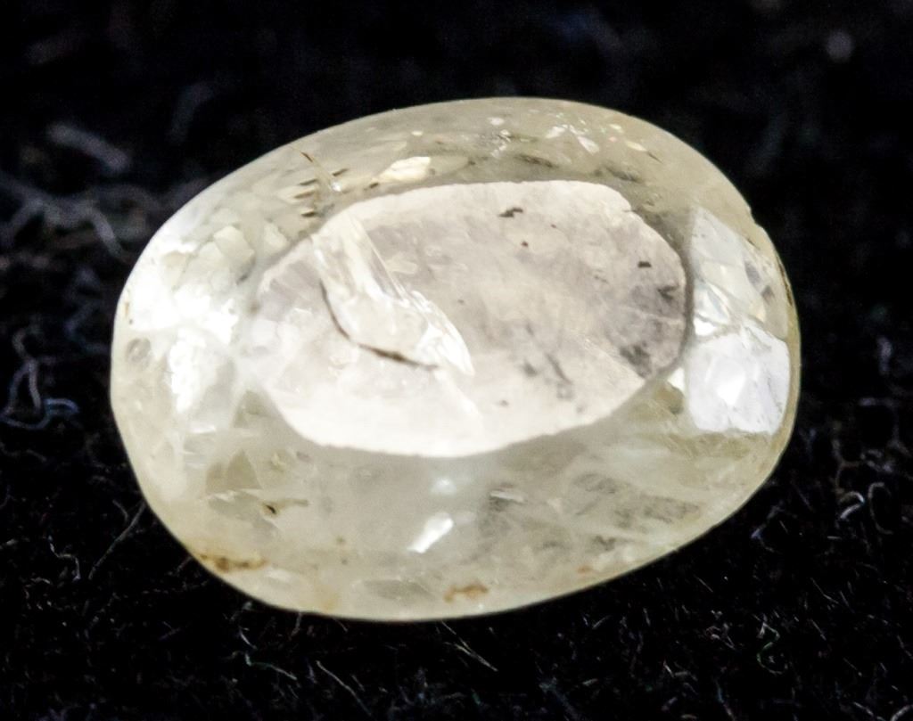 One (1) 2.49 ct oval cut very light yellow natural sapphire. Accompanied with GJSPC certificate. 8.87 x 6.72 x 4.11 mm.