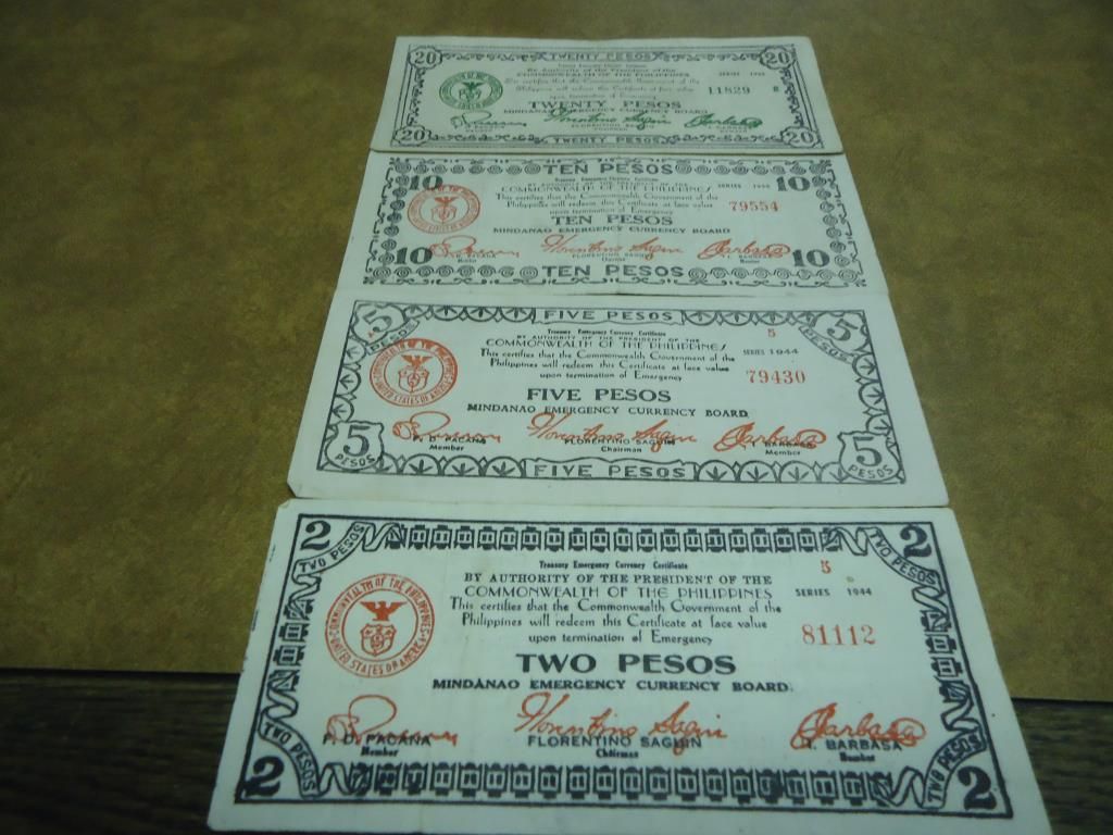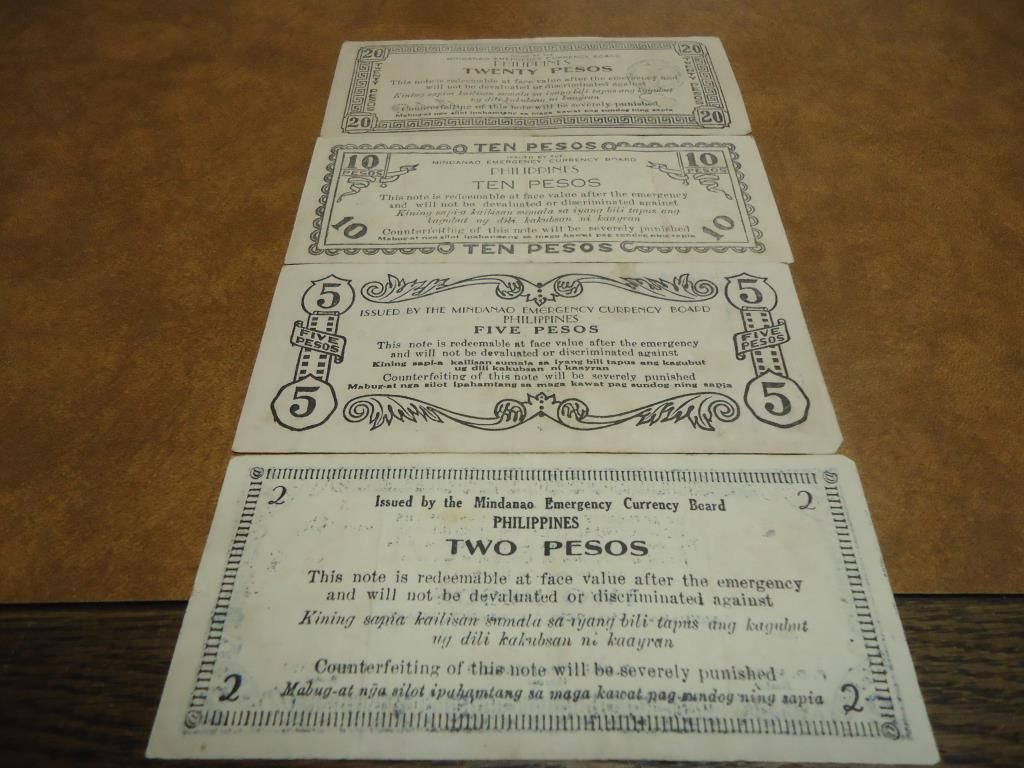 2, 5,10 & 20 PESO WWII GUERRILLA MONEY