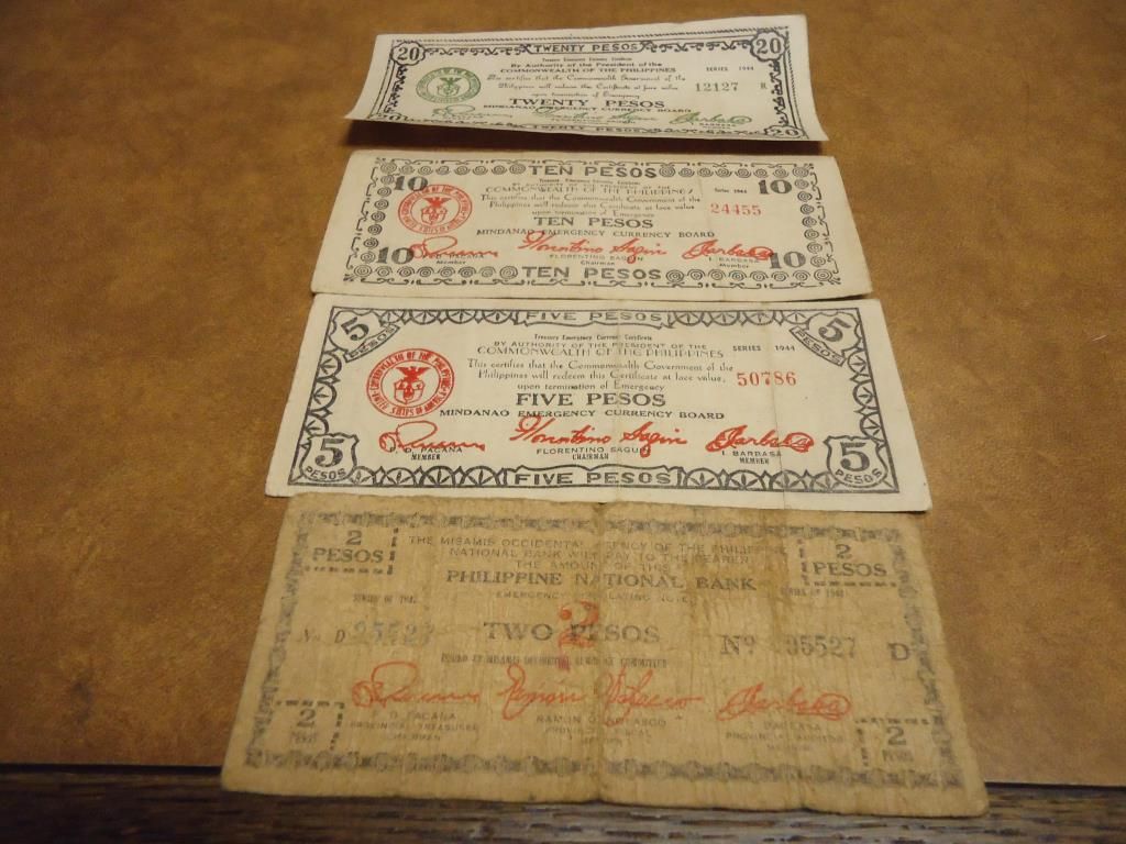 2,5,10 & 20 PESOS WWII PHILIPINNES GUERRILLA MONEY